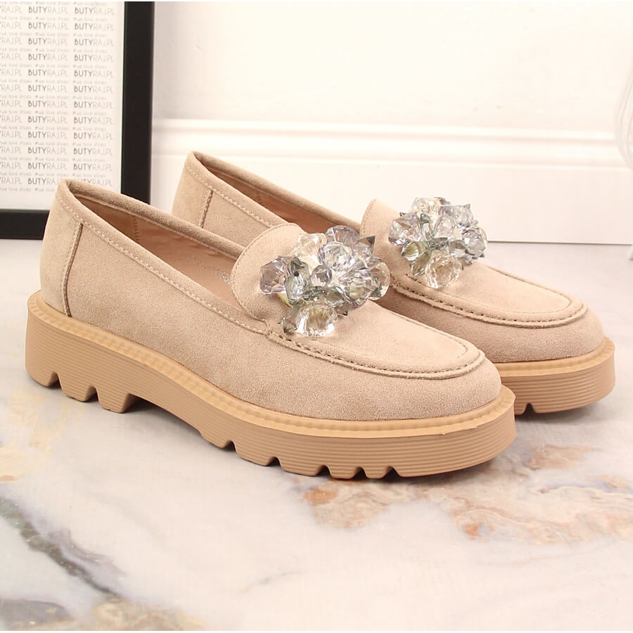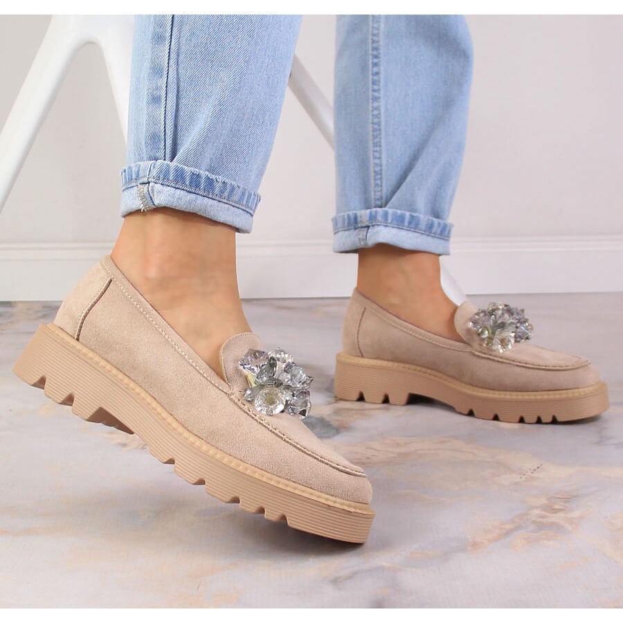Détails: Mocassins en daim pour femmes avec cristaux beiges Vinceza 10863