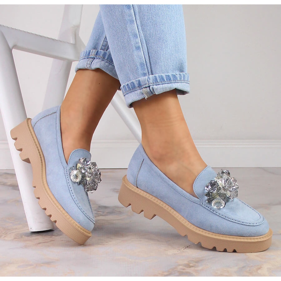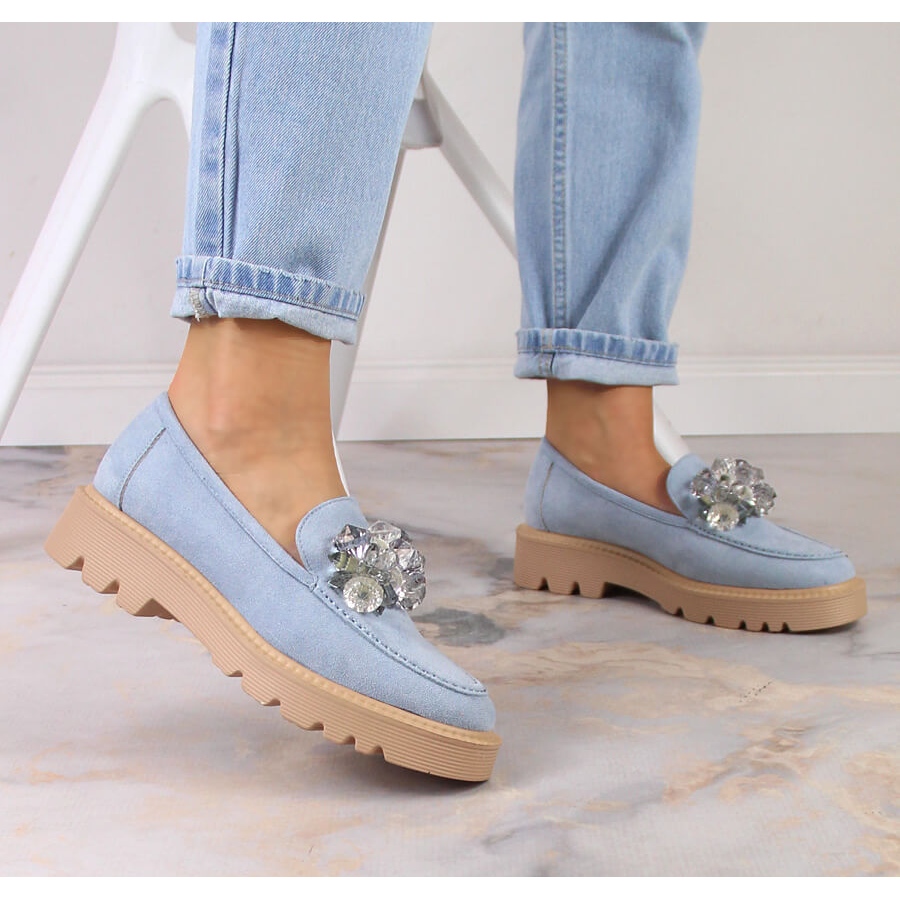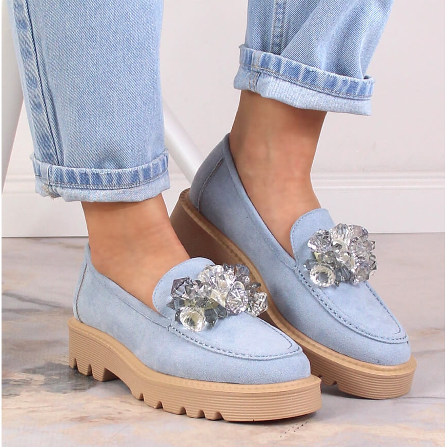 Détails: Mocassins en daim pour femmes avec cristaux bleus Vinceza 10863 gris