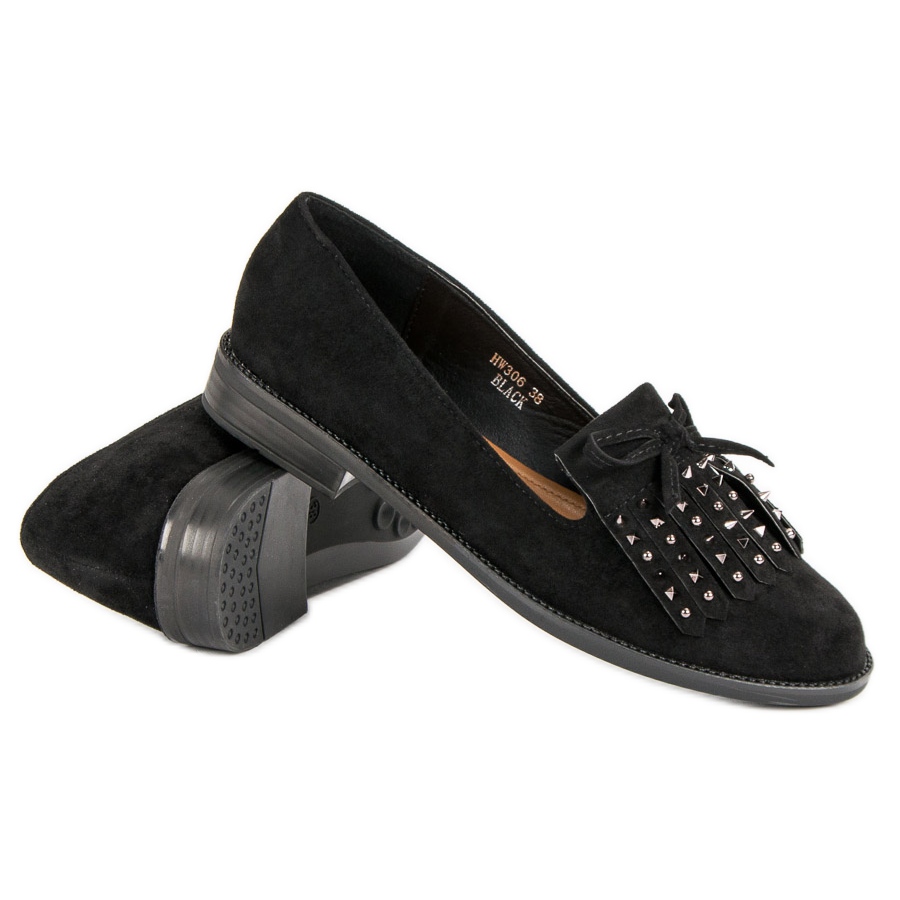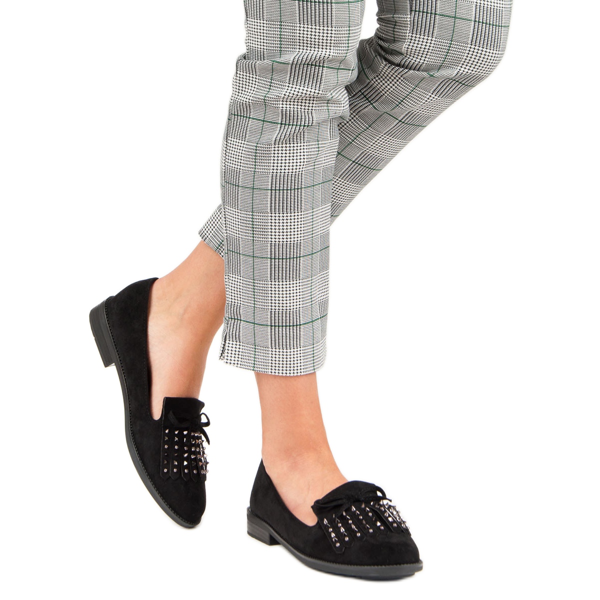 Les mocassins noirs Sergio Todzi sont un choix extrêmement élégant pour toute femme qui valorise le confort et un look à la mode. Fabriqués en cuir suédé écologique de haute qualité, ils sont légers et élégants, tout en offrant une protection efficace contre le vent et le froid. Leur design caractéristique avec un nœud et des clous ajoute une touche rock, ce qui en fait un complément parfait aux styles de tous les jours et de soirée.