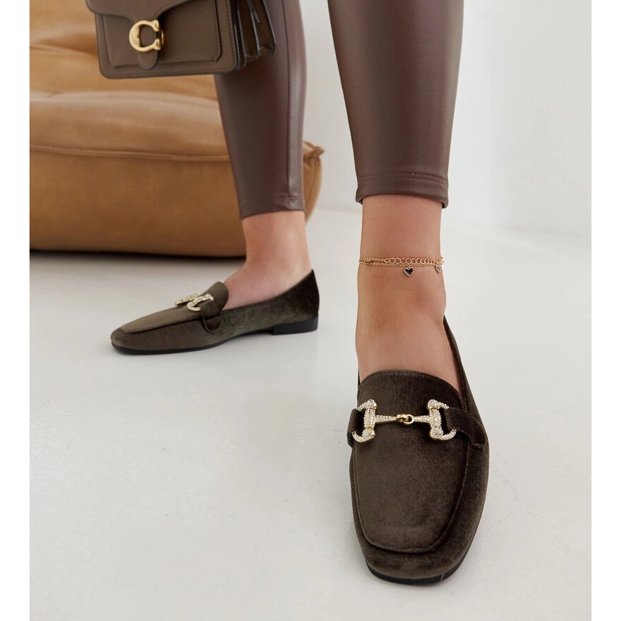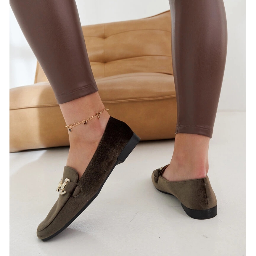 Fabriqués en velours de haute qualité, ces mocassins se caractérisent par une belle nuance de vert intense, qui attire le regard et ajoute de l'originalité à n'importe quel style. De plus, les strass inclus dans le design confèrent aux chaussures une brillance et une élégance uniques, ce qui en fait un complément parfait aux tenues décontractées et plus élégantes.