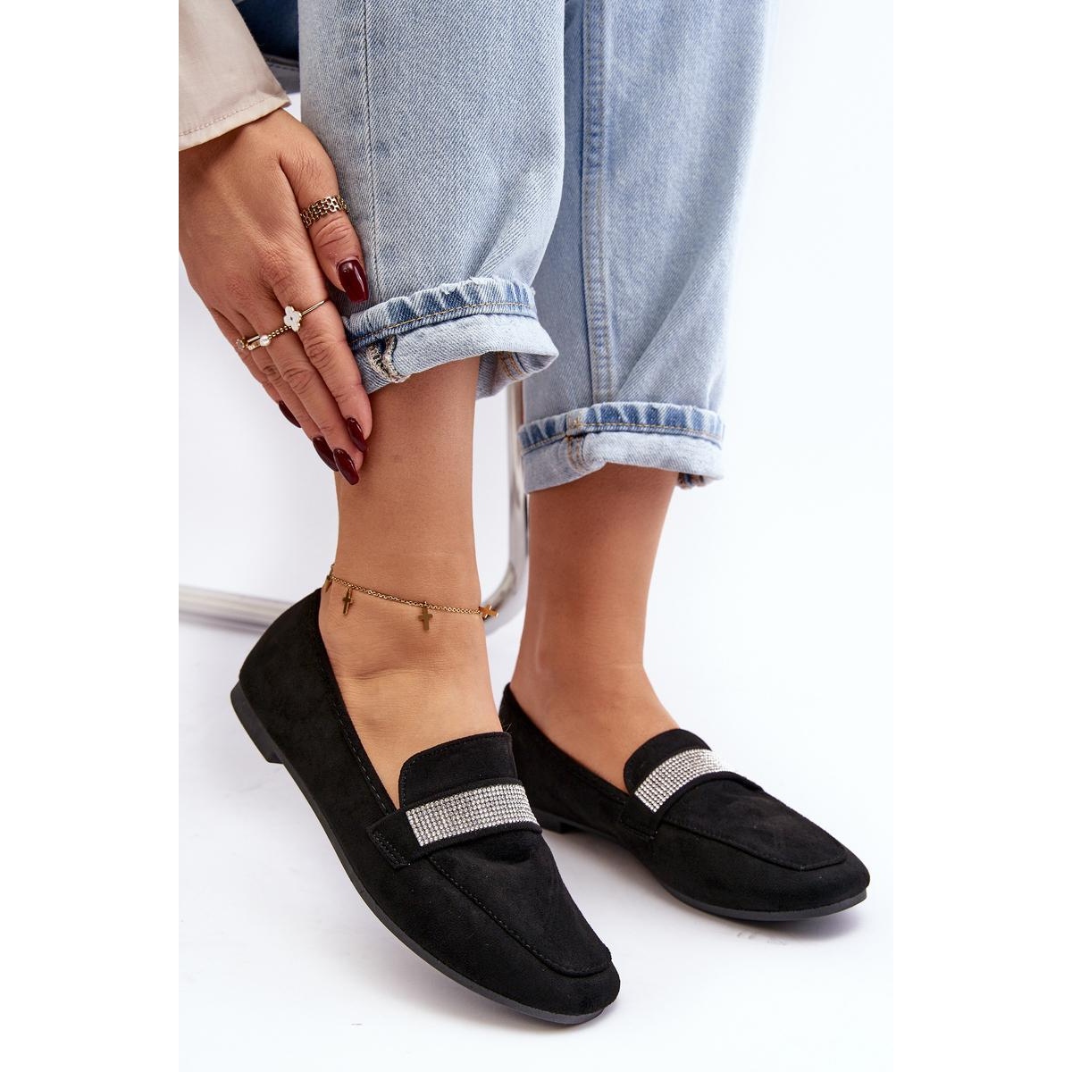 Les mocassins se distinguent par une ceinture décorative avec de nombreux petits zircons qui leur donnent une lueur et une élégance spéciales. La semelle intérieure en cuir écologique douce et profilé offre un confort, et leur couleur noire universelle les fait bien se mélanger avec différentes stylisations.