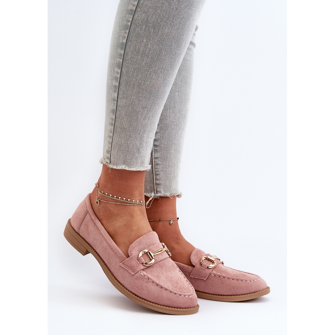 Détails: Mocassins Femme À Talon Plat Avec Décoration Aviole Rose