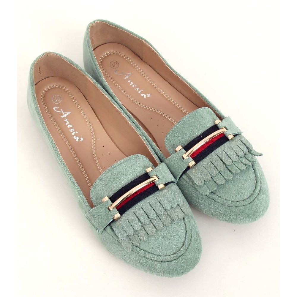 Découvrez les mocassins céladon pour femme 88-381 Green - un ajout élégant à toute garde-robe. Ces chaussures élégantes combinent une coupe soignée et des détails uniques, comme des applications dorées, des rayures et des franges, qui leur confèrent un caractère unique. Grâce à eux, vos tenues gagneront en style et en classe uniques.