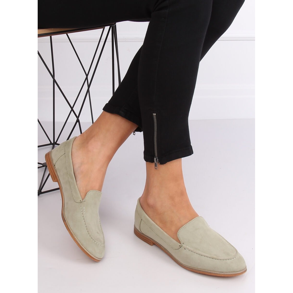 Les mocassins céladon pour femmes T359P Vert sont un choix idéal pour les femmes qui apprécient à la fois le confort et l'apparence à la mode. Fabriqués en daim écologique, ils combinent un design classique avec une couleur moderne qui attirera certainement l'attention. Des bouts soignés et arrondis et un talon plat de 1,5 cm confèrent à ces mocassins un bel aspect sur la jambe et garantissent un confort même après une journée entière de port.