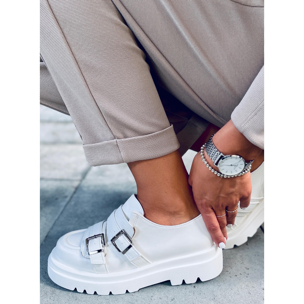 Nous vous présentons les mocassins blancs Atena White pour femmes - le choix parfait pour les amateurs de chaussures à la mode et extravagantes. Ces mocassins design se distinguent par une semelle massive et des boucles accrocheuses qui leur confèrent un caractère unique. Grâce à leur aspect unique, ils sont parfaits pour compléter le style de tous les jours, en leur ajoutant légèreté et élégance.