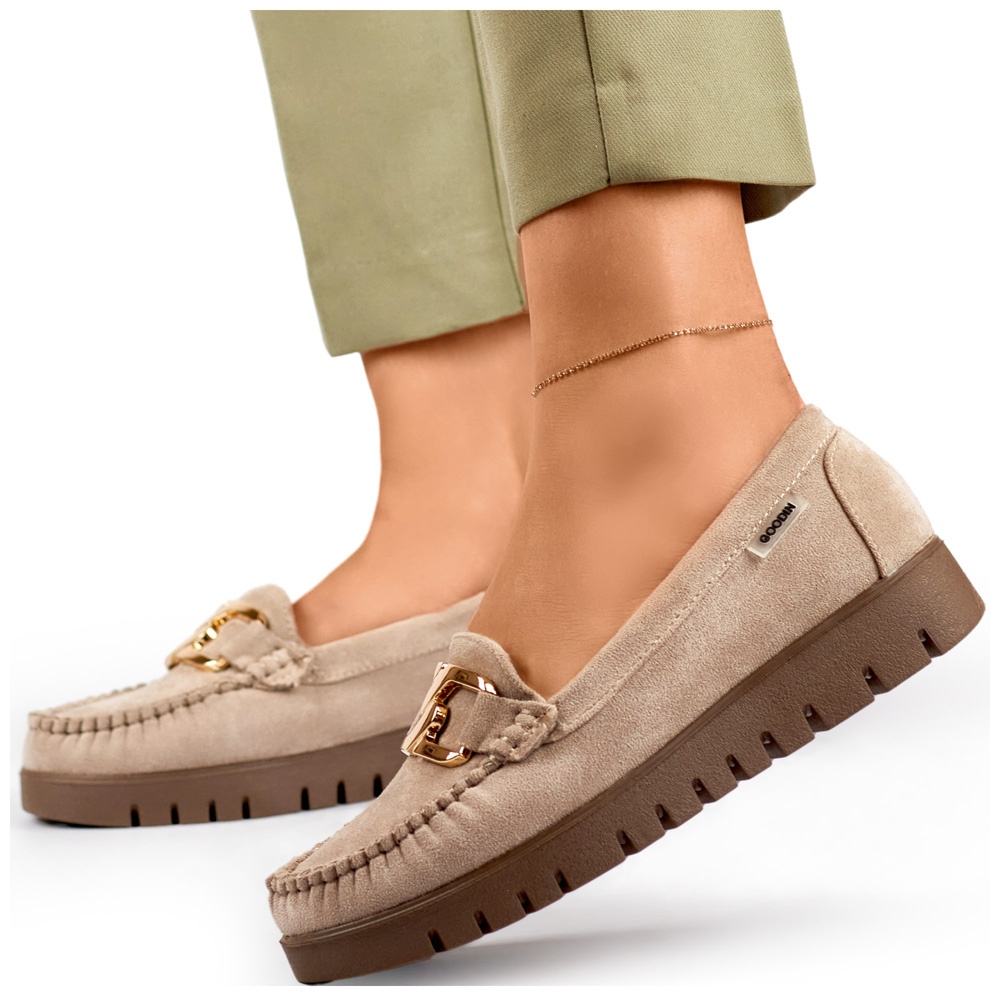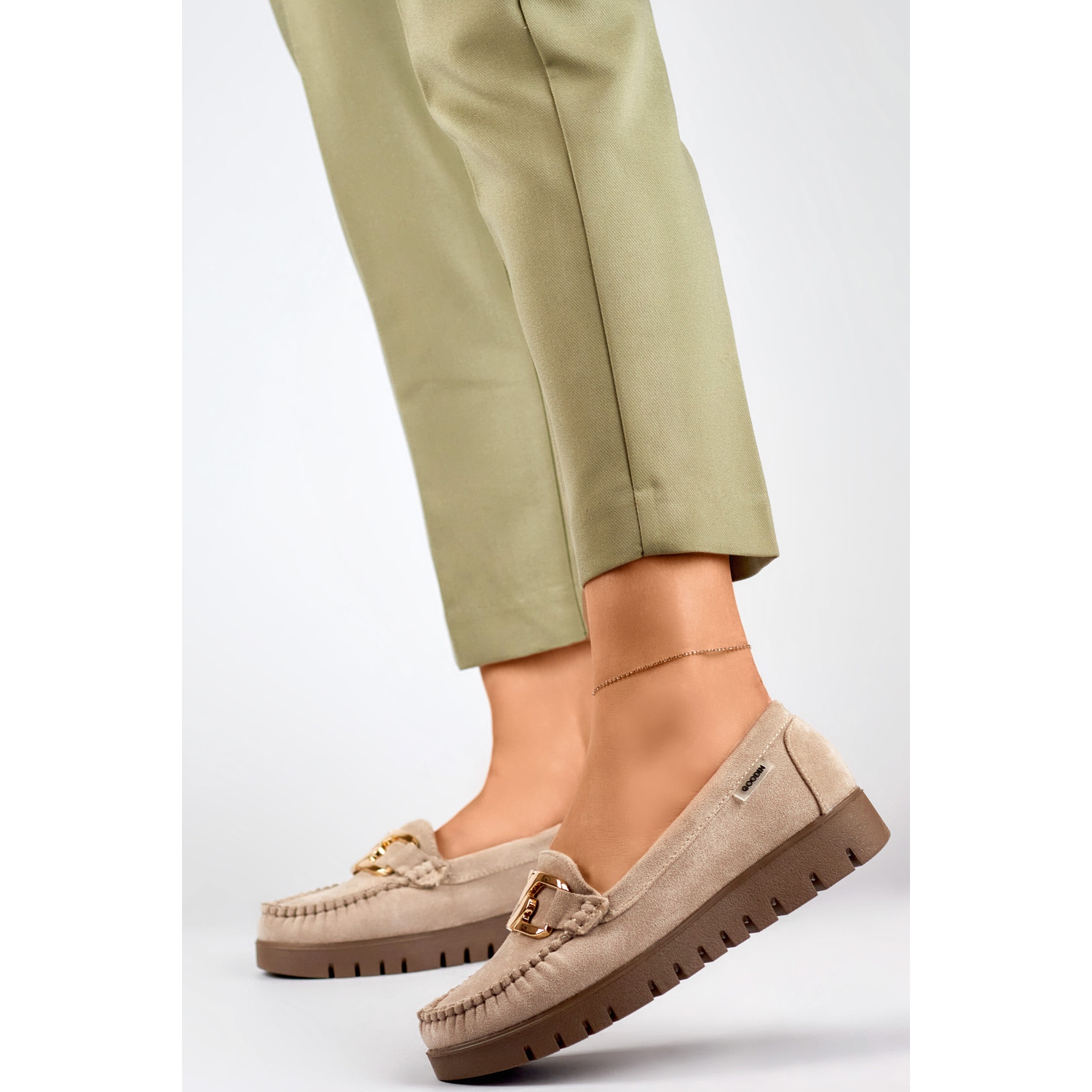 Détails: Mocassins femme beige foncé avec semelle confortable