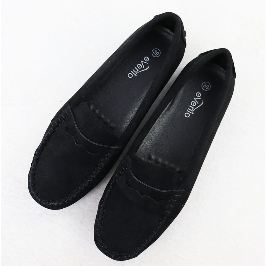 Evento Mocassins Femme Black Evento 7673 Chaussures en daim pour femmes le noir