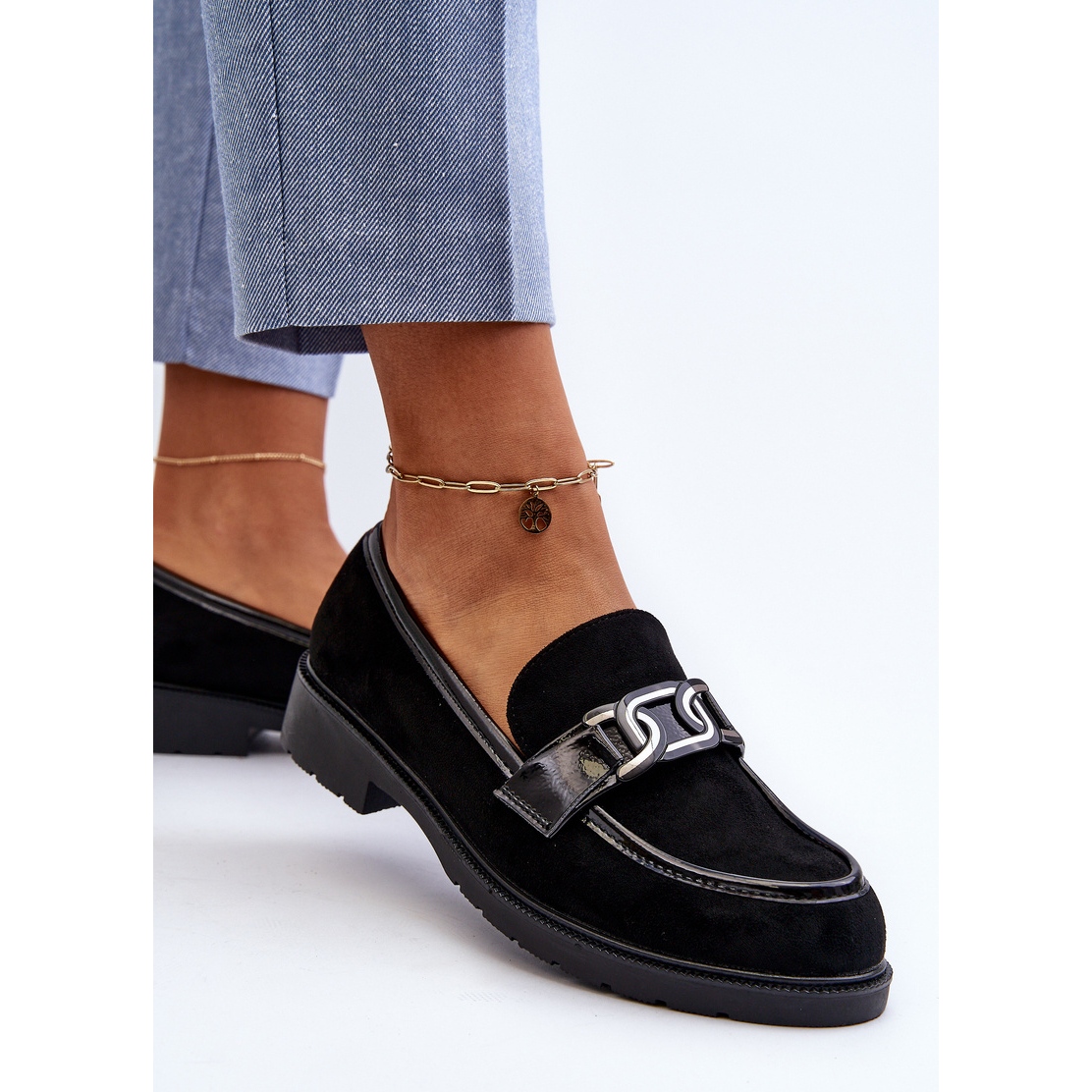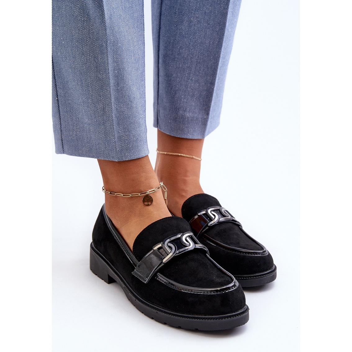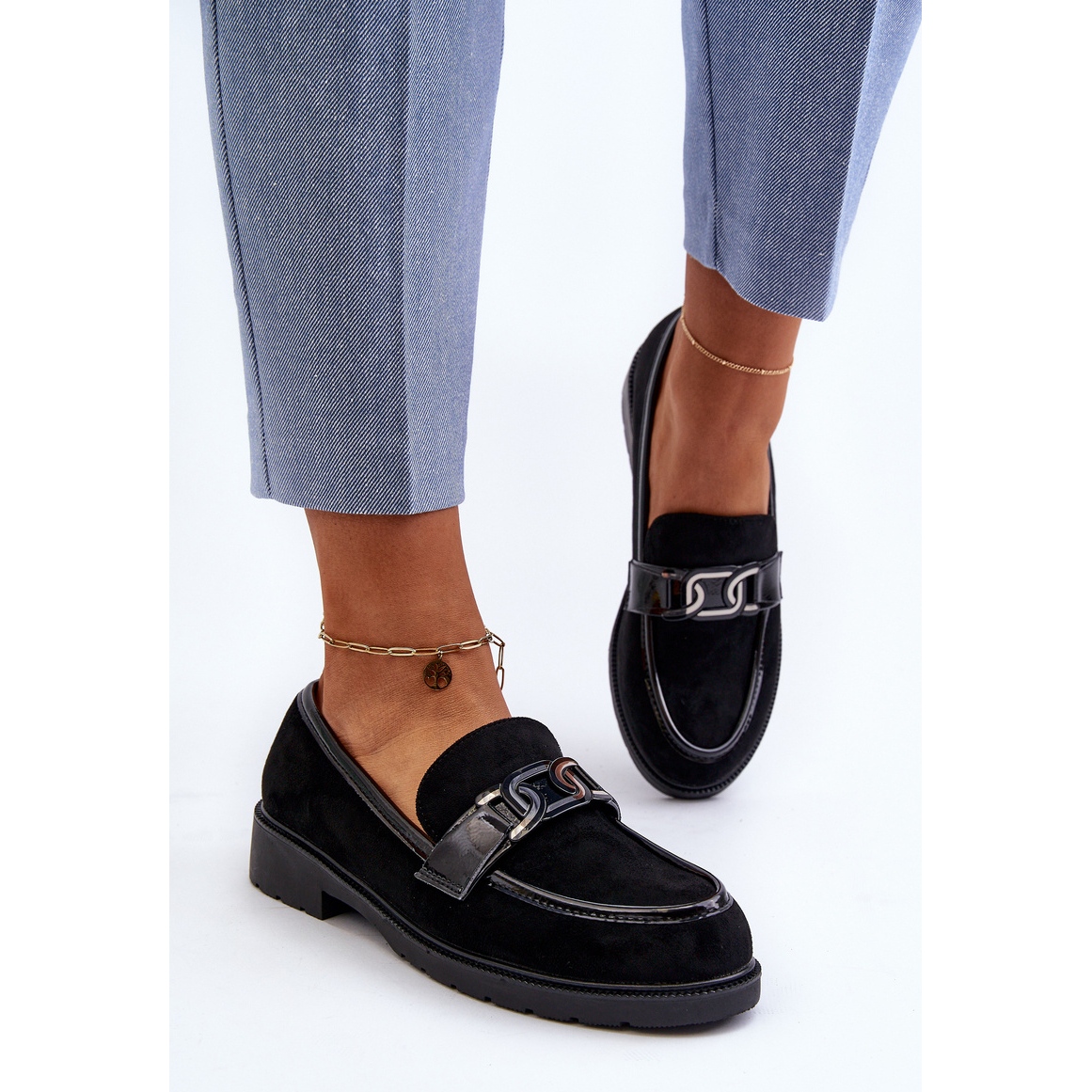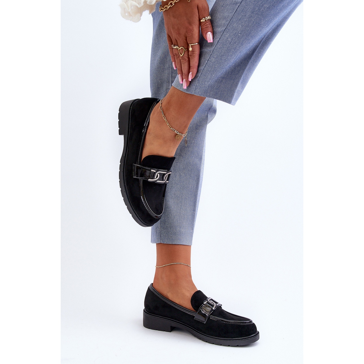 Le talon plat de 3 cm de haut permet des mouvements stables et confortables tout au long de la journée. Le détail élégant sous la forme d'une chaîne placée sur le devant des mocassins est également important, ajoutant un caractère unique aux chaussures. Cet accent permet aux mocassins de s'adapter parfaitement aussi bien aux tenues urbaines de tous les jours qu'aux tenues plus formelles.