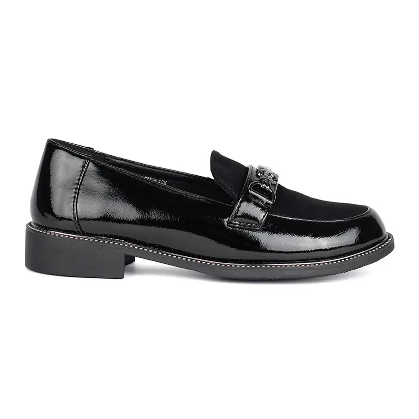 Découvrez l'élégance et le confort avec les mocassins des femmes noires d'une marque réputée. Ces chaussures élégantes combinent parfaitement un look décontracté, classique et élégant, ce qui en fait un excellent choix chaque jour. Leur conception attrayante améliore le cuir écologique verni et une chaîne efficace qui leur donne du caractère.