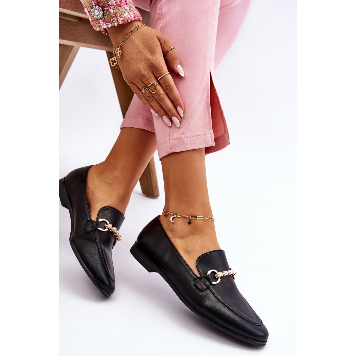 - Modèle: Mocassins En Cuir Avec Perles Décoratives