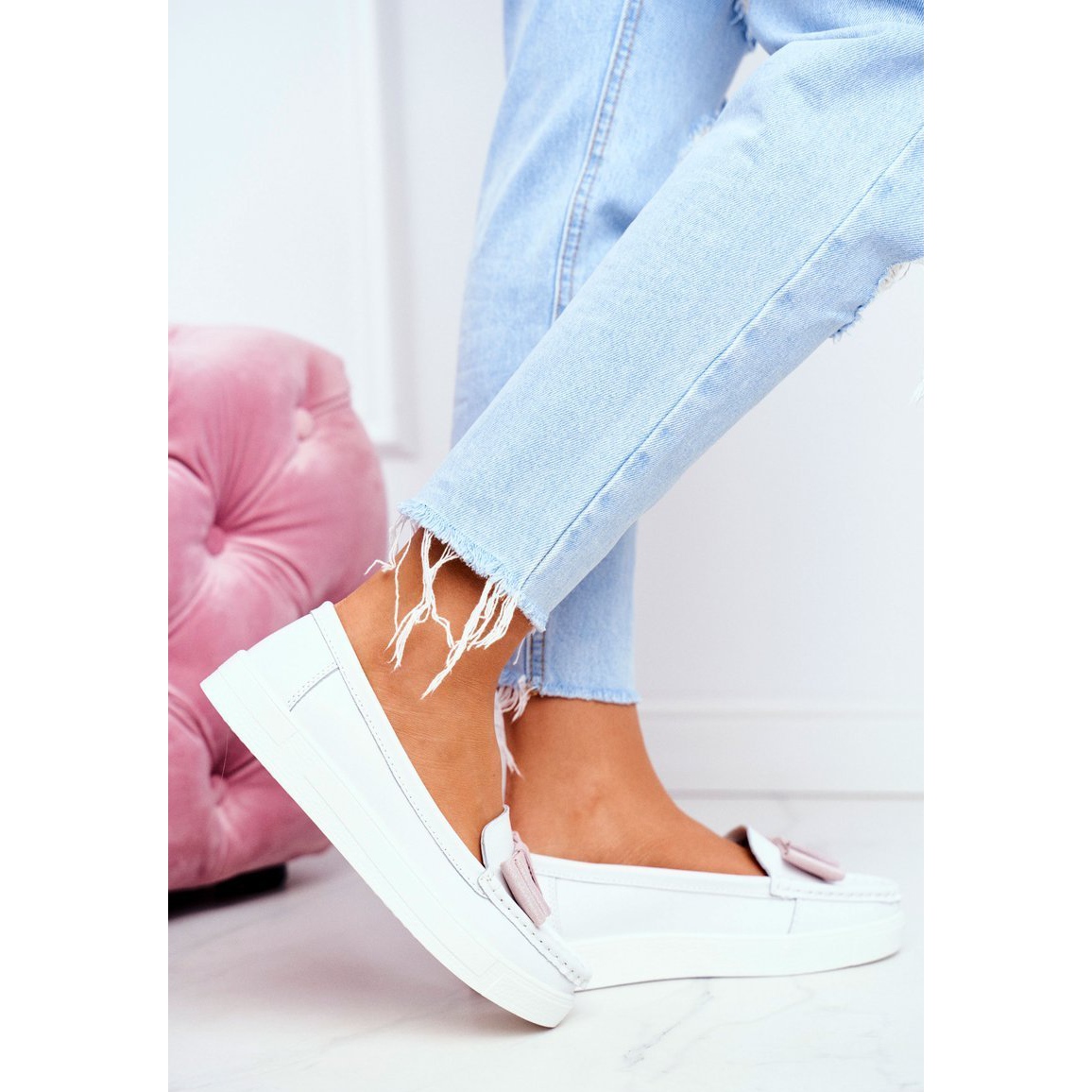Détails: S.Barski Mocassins Femme en Cuir Blanc et Rose Lovren