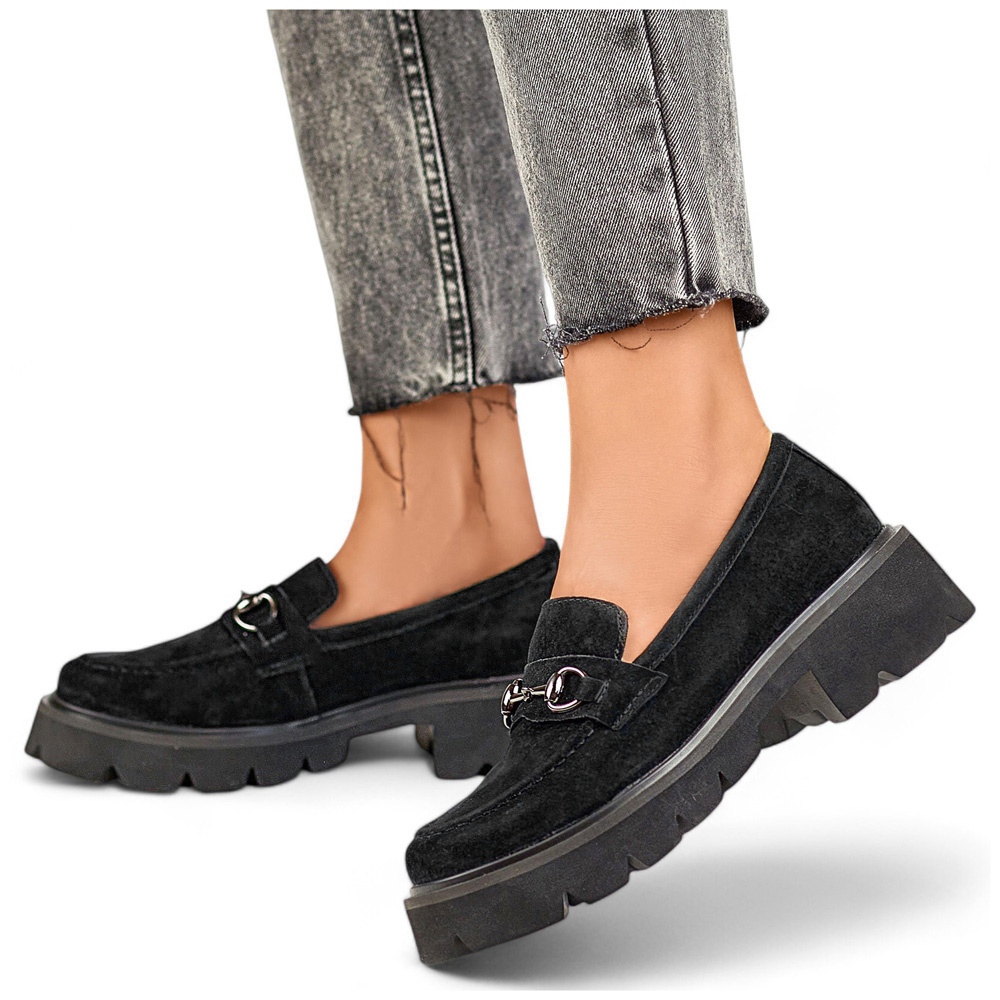 Nous présentons d'élégants mocassins pour femmes en cuir noir, qui sont le choix parfait pour les femmes qui apprécient le style et le confort. Fabriquées en cuir naturel de haute qualité, ces chaussures combinent un design classique avec un accent moderne sous la forme d'une plateforme épaisse.