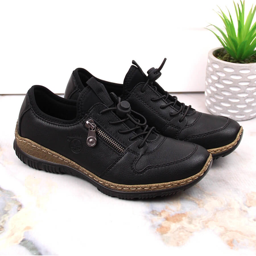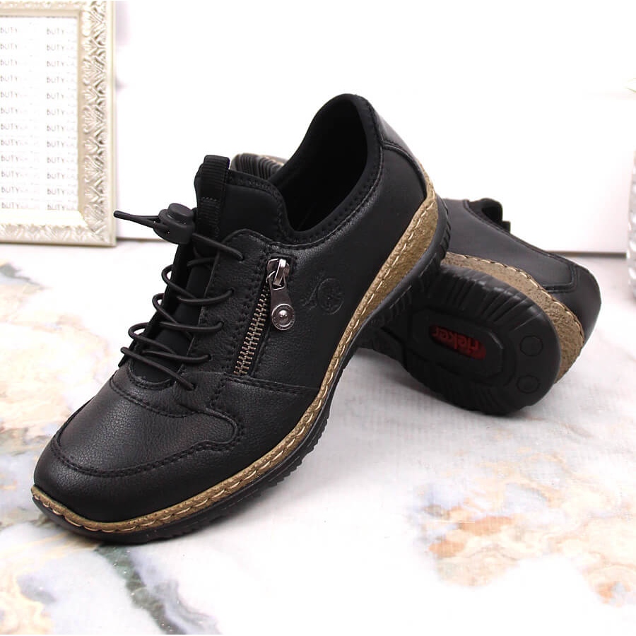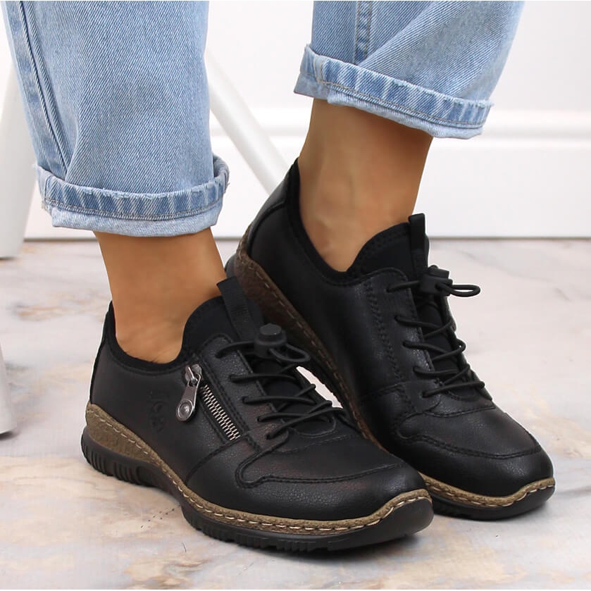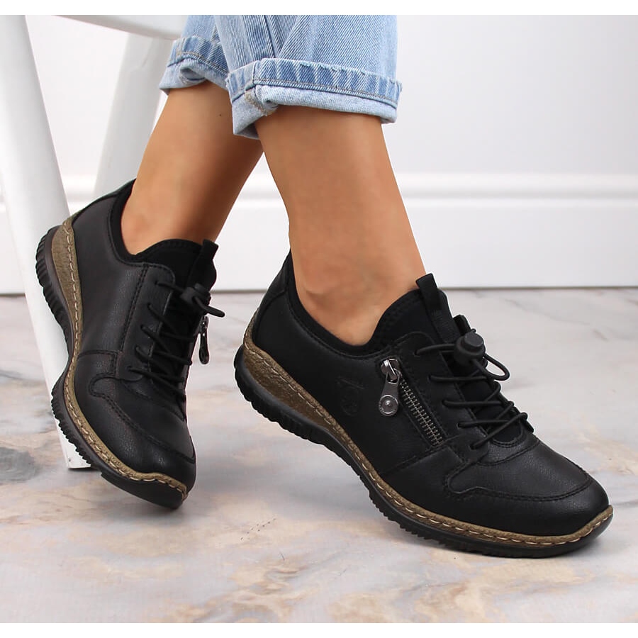 Détails: Mocassins femme en cuir noir Rieker N32G0-00 le noir