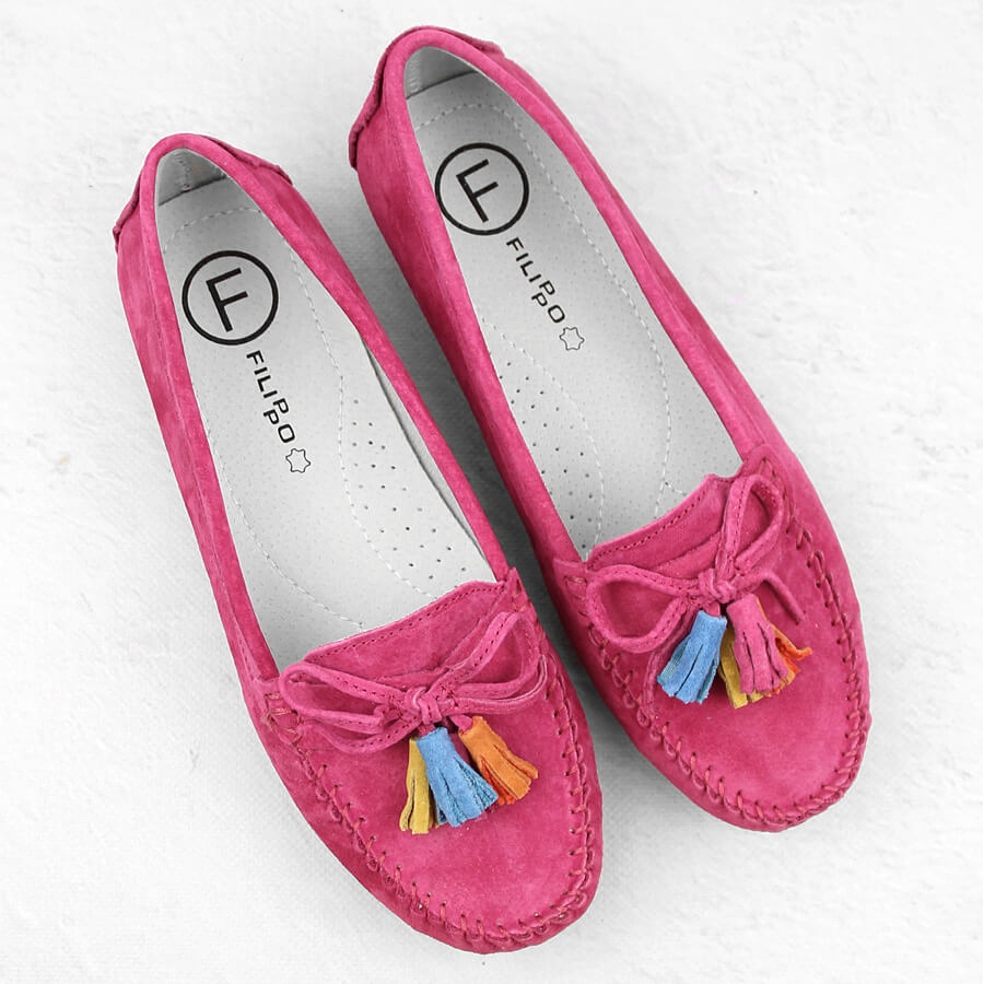 Découvrez l'élégance et le confort qu'offrent les mocassins femme en cuir suédé à franges d'un coloris fuchsia intense de la marque Filippo. Ces chaussures uniques sont une proposition idéale pour les femmes qui apprécient le style et le confort au quotidien.