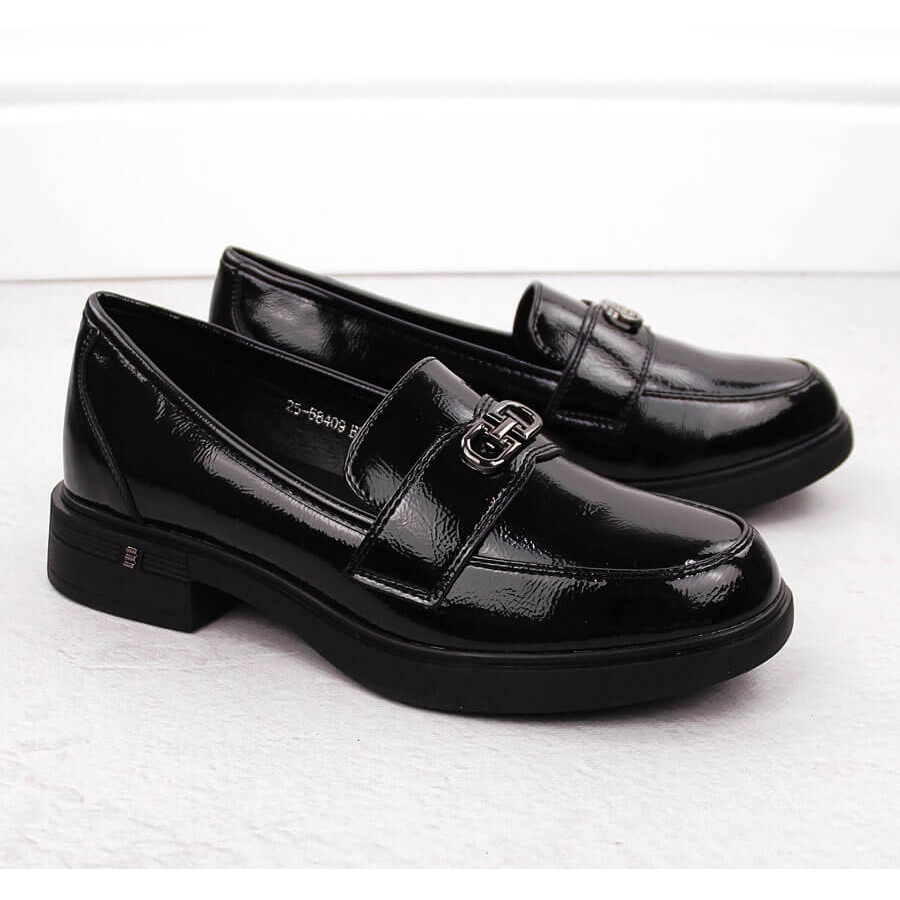 Découvrez l'élégance et le confort dans une paire de chaussures - les mocassins en cuir laquée du noir de la marque Vinceza est le choix parfait pour une femme moderne qui veut combiner le style avec confort. Fabriqués en cuir naturel verni de haute qualité, ces chaussures attirent non seulement l'attention de leur splendeur, mais aussi parfaitement dans les dernières tendances de la mode.