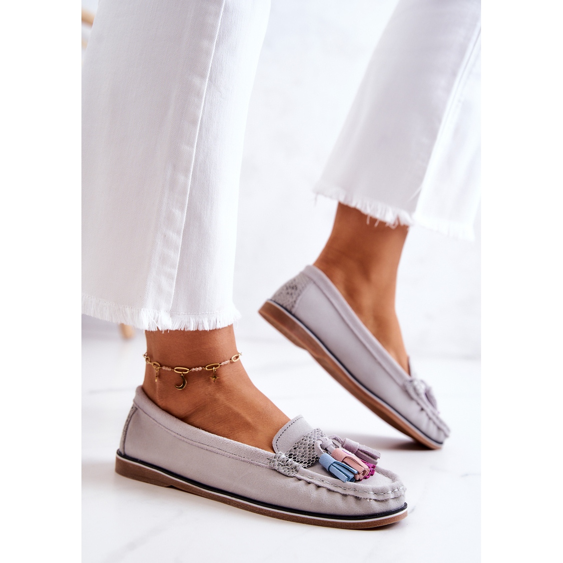 Détails: Mocassins Femme En Daim À Franges Gris Laressa