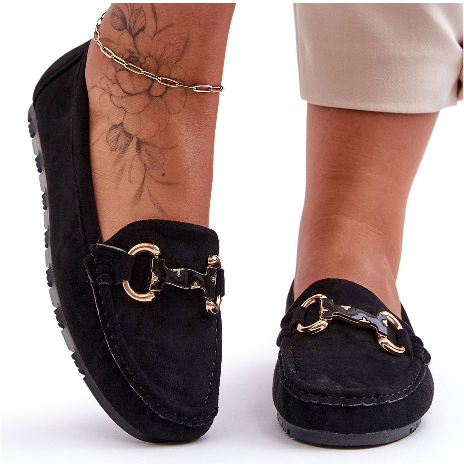 PG1 Mocassins Femme En Daim Avec Décoration Noir Dionira