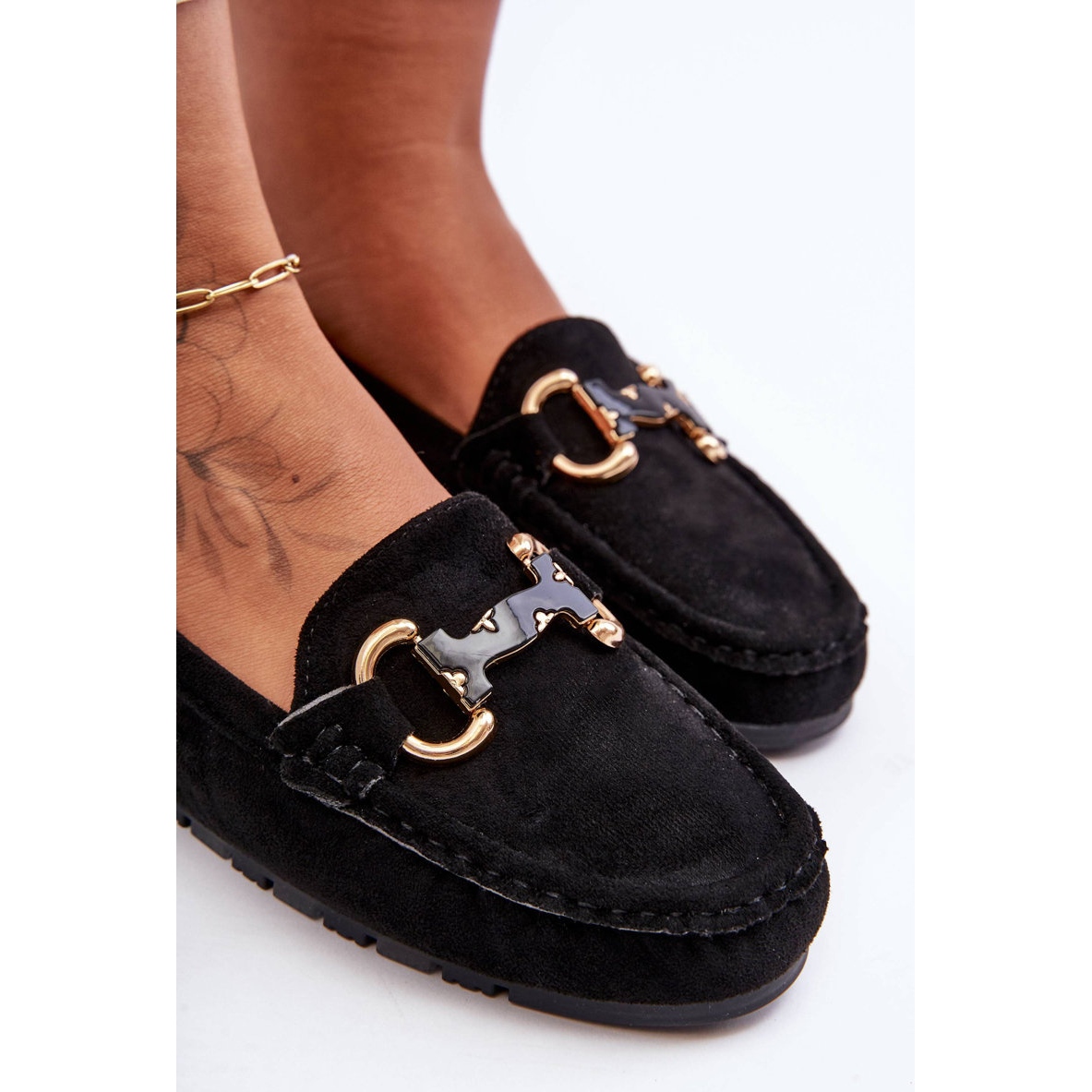 Détails: PG1 Mocassins Femme En Daim Avec Décoration Noir Dionira le noir