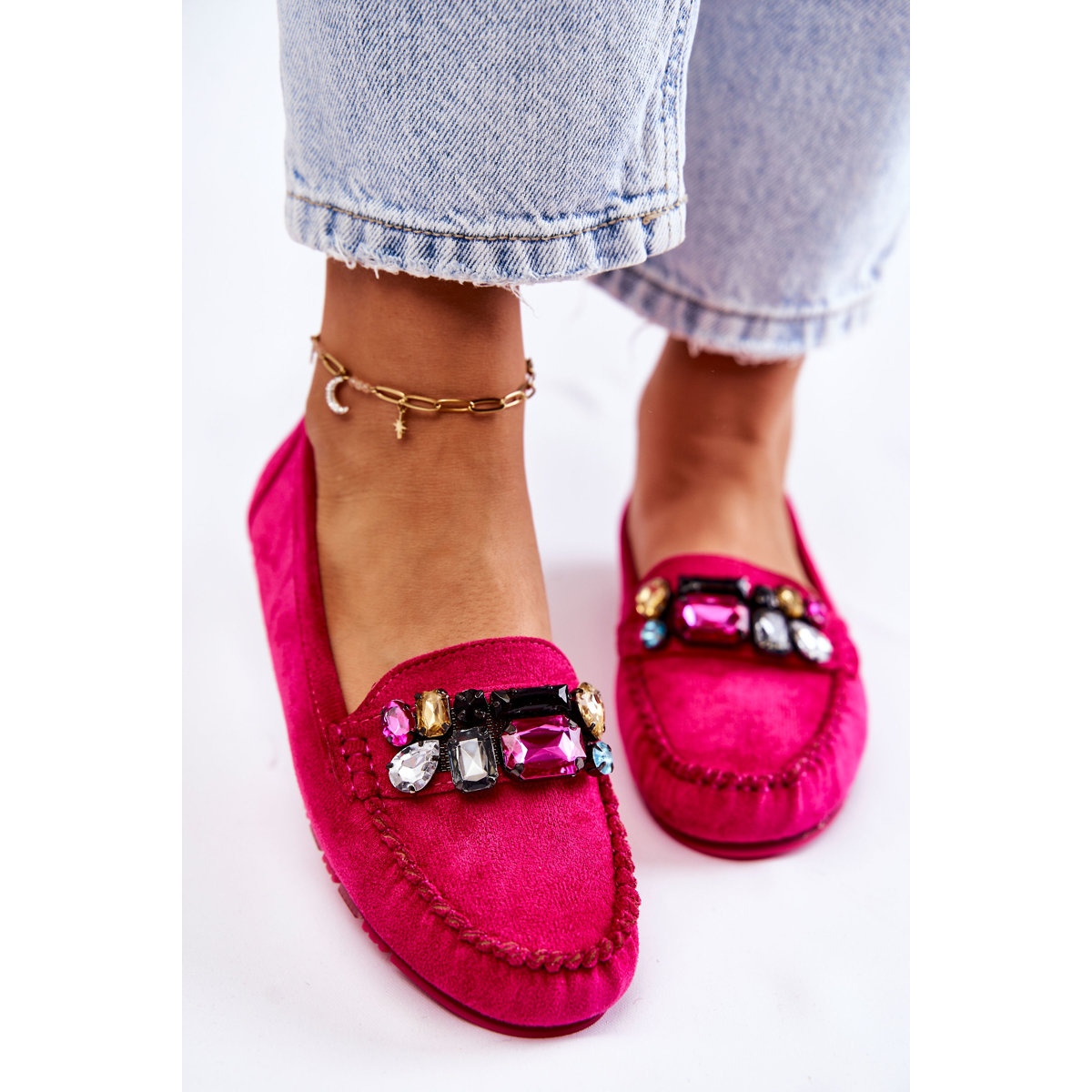 Découvrez l'élégance et le confort avec les mocassins en daim fuchsia Janetta pour femmes de PS1. Fabriquées en éco-daim de haute qualité, ces chaussures allient un style classique avec une touche moderne. Il y a des pierres décoratives sur le devant des mocassins, qui leur donnent un caractère et un éclat uniques.