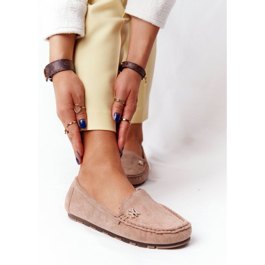 Ces mocassins sont fabriqués en éco-daim doux de haute qualité, qui non seulement est élégant, mais garantit également la durabilité et la durabilité des chaussures. La couleur beige neutre leur permet de s'adapter à presque tous les styles, des jeans décontractés aux tenues professionnelles ou de cocktail plus compliquées.