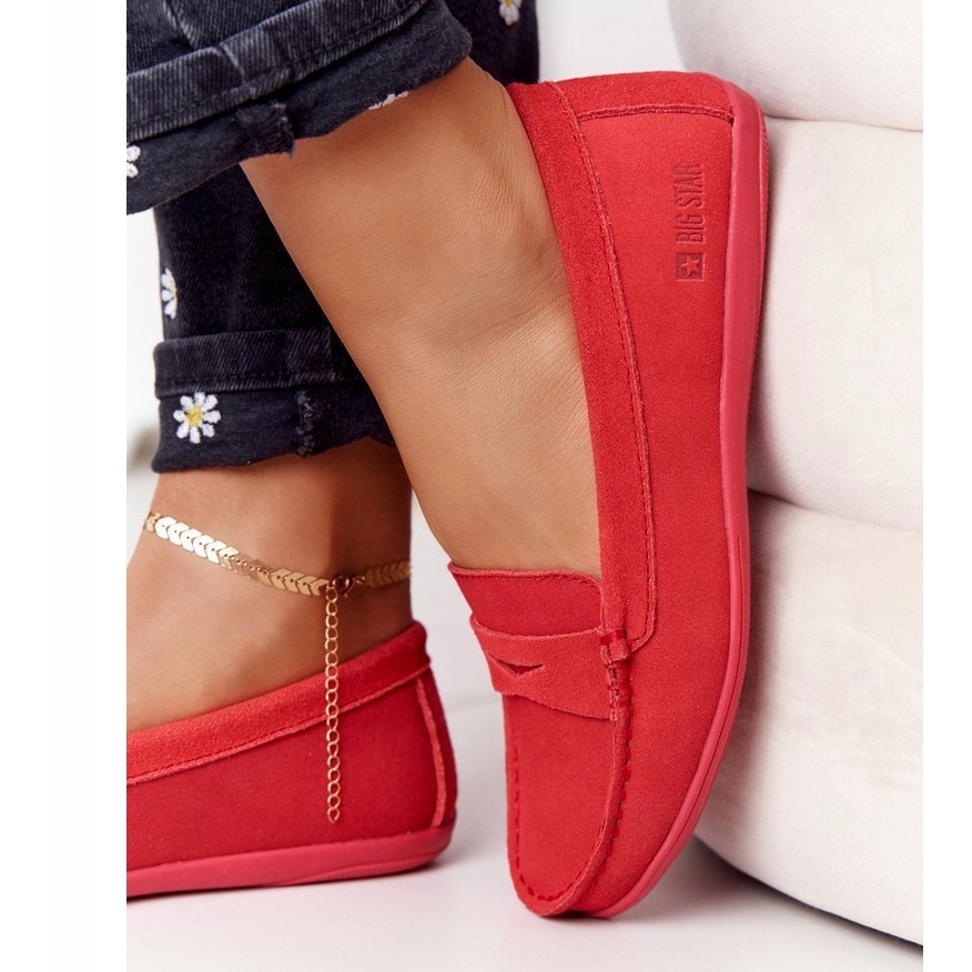Découvrez un style et un confort uniques avec les mocassins pour femme en daim Big Star HH274668 d'un majestueux rouge corail. Ces chaussures classiques de la célèbre marque polonaise BIG STAR sont soigneusement fabriquées en daim naturel de haute qualité, ce qui garantit non seulement une apparence élégante, mais aussi une durabilité.
