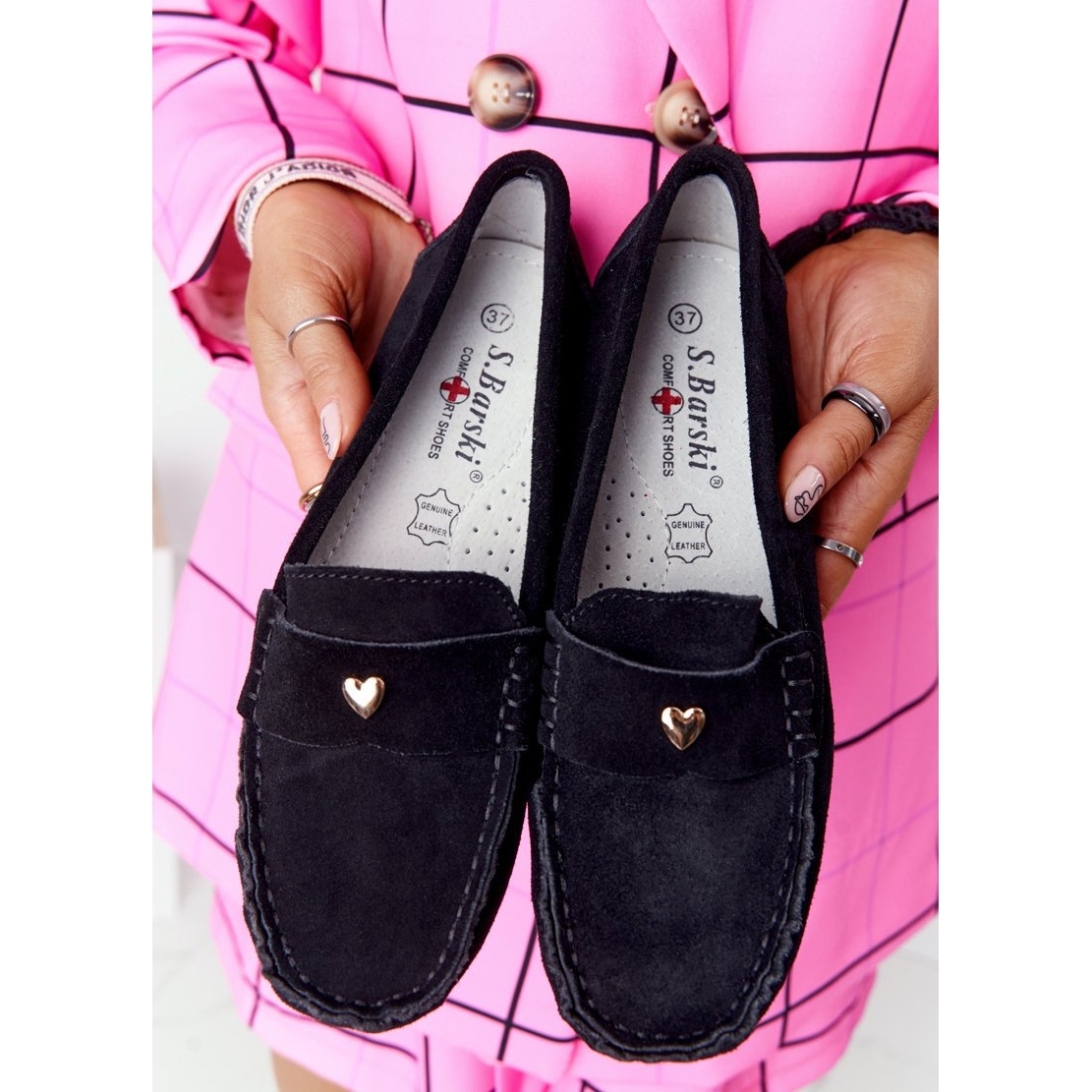 S.Barski S.Barski Mocassins femme en daim de S. Bararski Noir le noir