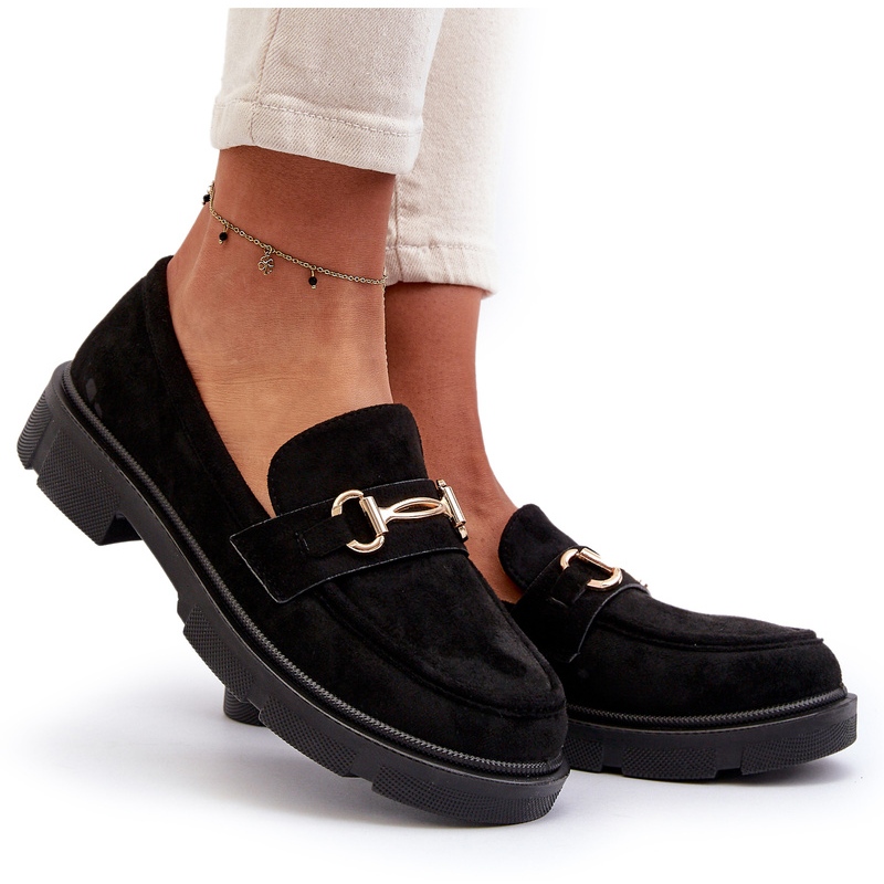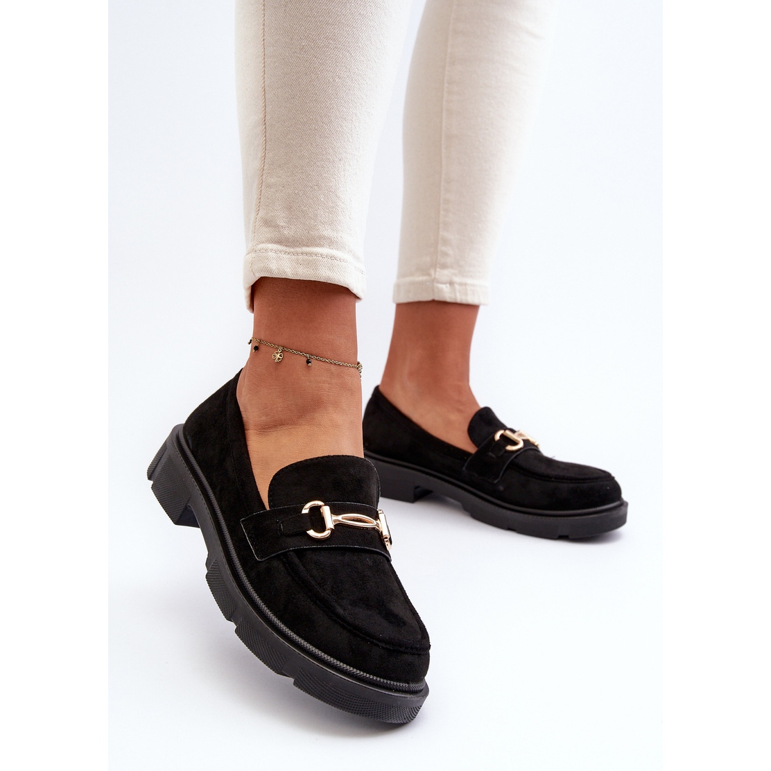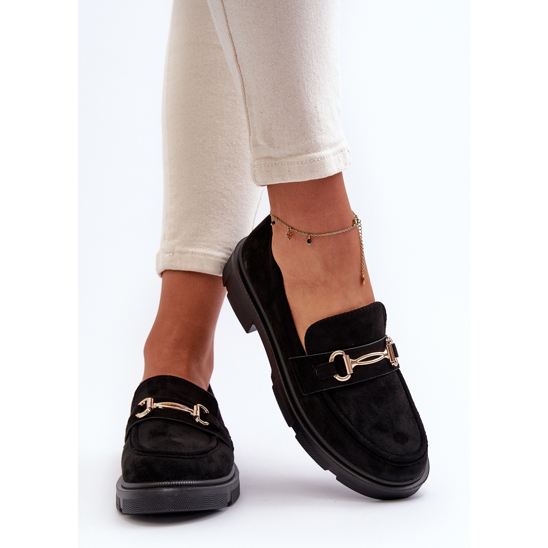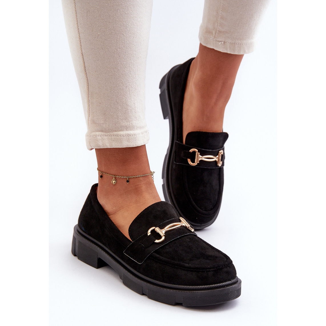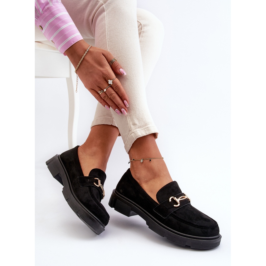 Détails: Mocassins Femme En Daim Eco Avec Décoration Dorée, Noir Lighas le noir