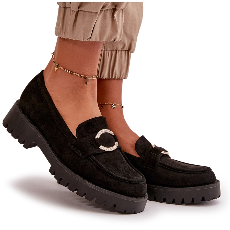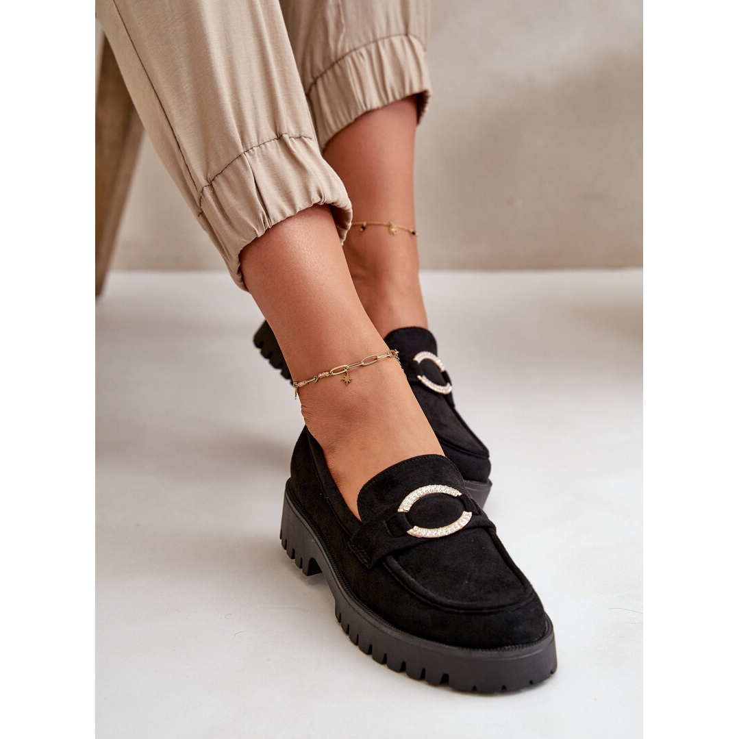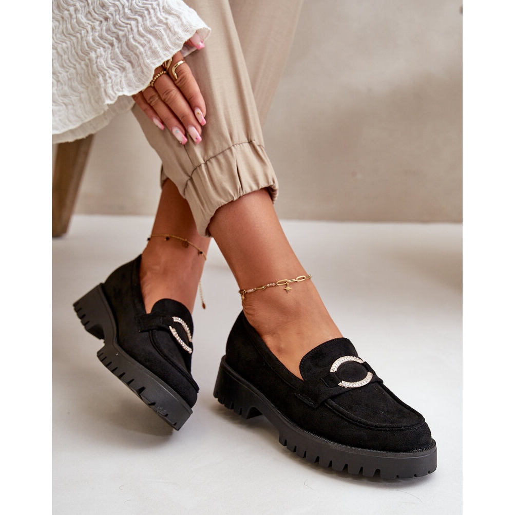 Détails: Mocassins Femme En Daim Eco Avec Détails Brillants Noir Avellina le noir