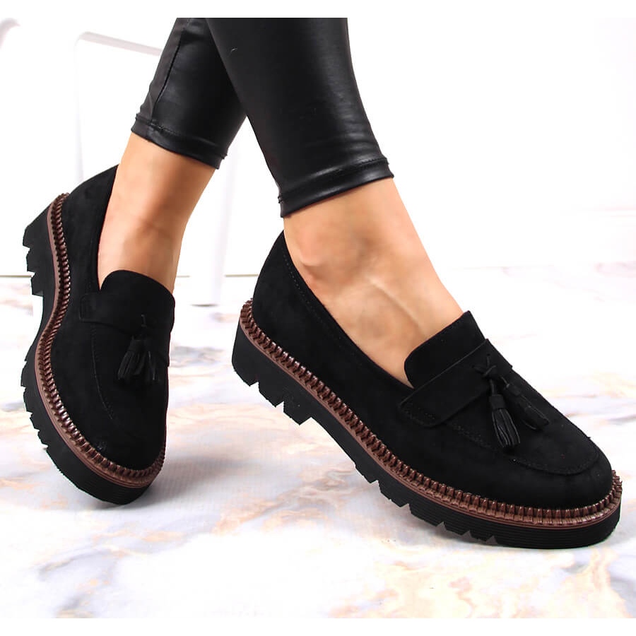 Vinceza Mocassins femme en daim noir à franges Vinceza le noir