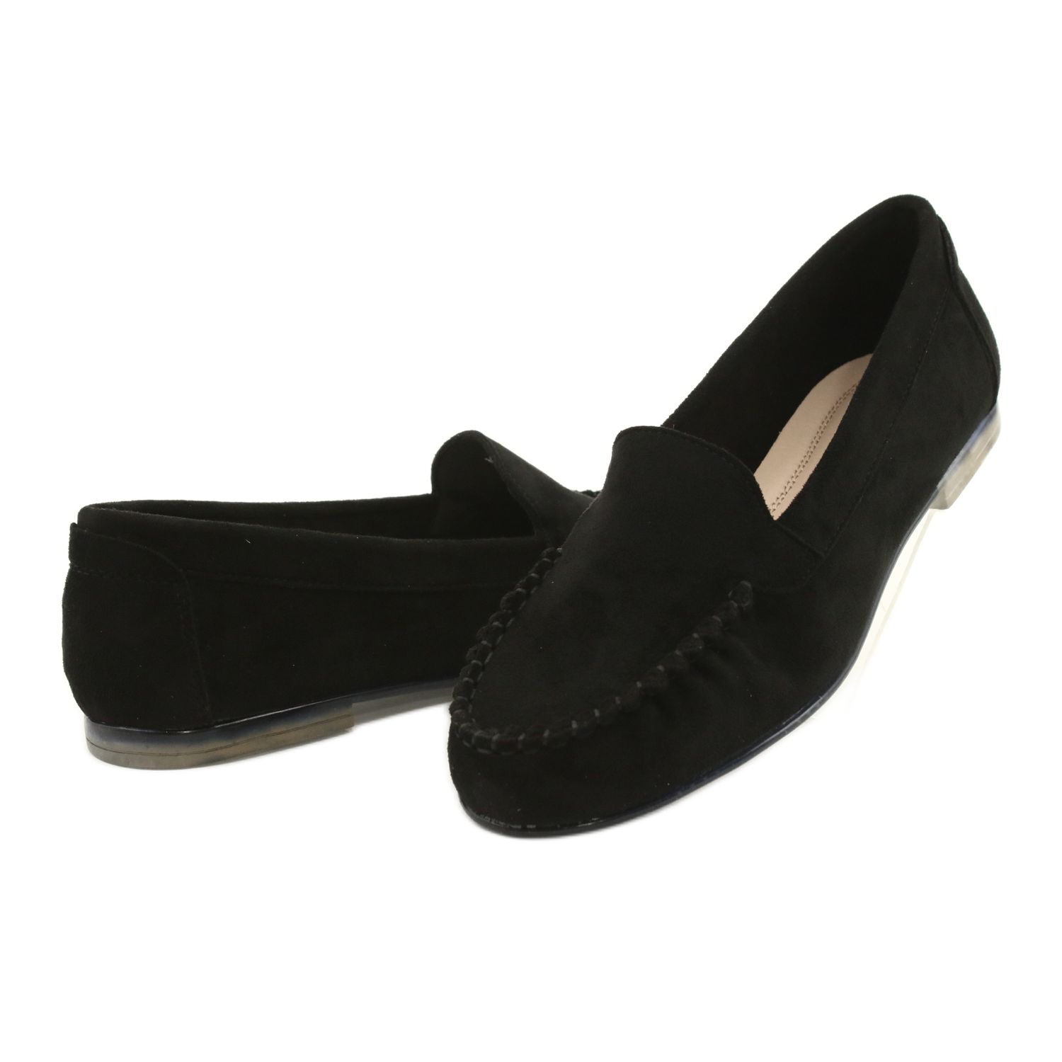 Fabriqués en cuir suédé écologique de haute qualité d'un coloris noir universel, les mocassins se distinguent par une finition subtile de la tige et un bout rond, qui leur ajoute du style. Le talon bas, de 1 cm de haut, assure un confort de port, et les semelles souples et souples en thermocaoutchouc garantissent non seulement le confort, mais affichent également des motifs colorés qui constituent un élément de design intéressant.