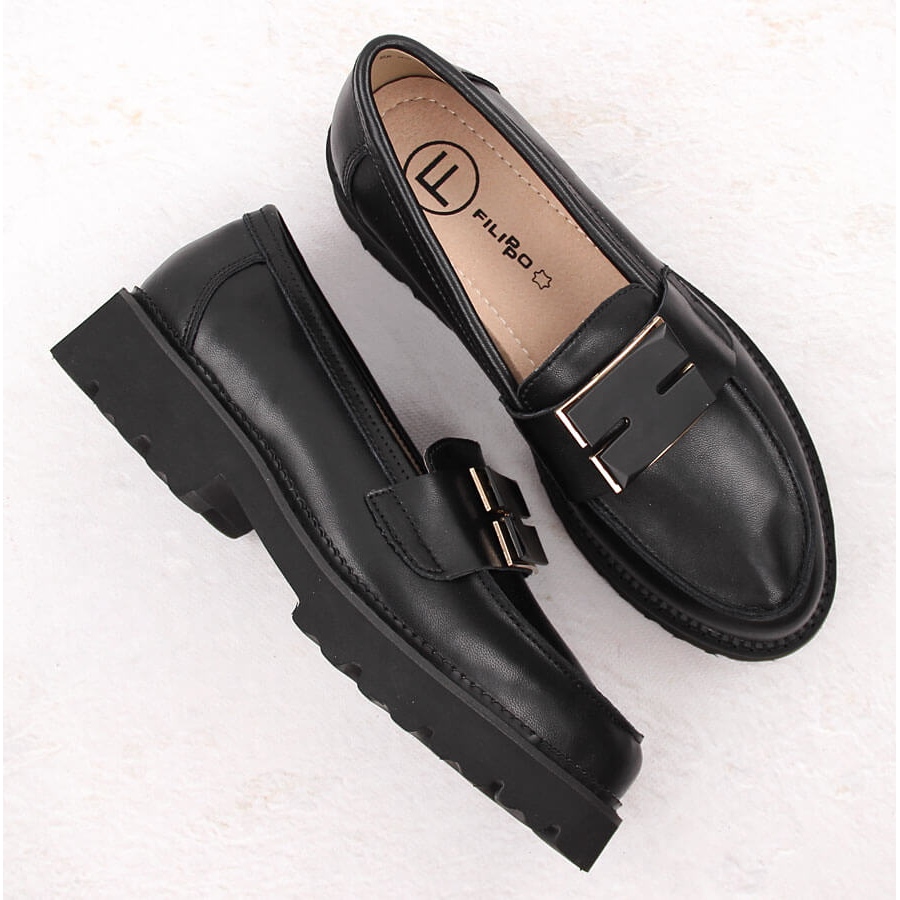 Les mocassins pour femmes en cuir noir Filippo DP6450 sont un choix idéal pour les femmes qui apprécient le style et le confort. Fabriqués en cuir naturel de haute qualité, ces mocassins classiques s'intègrent parfaitement aux dernières tendances, ajoutant de l'élégance à n'importe quel style. La semelle intérieure en cuir souple garantit le confort, permettant un port prolongé sans inconfort.