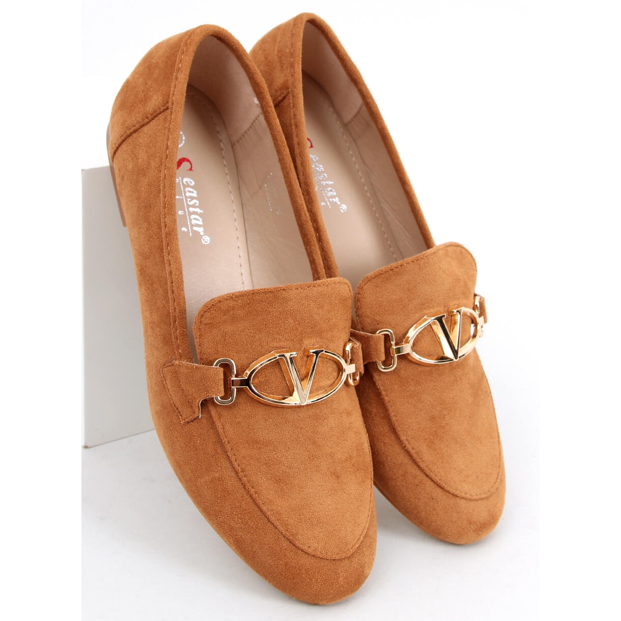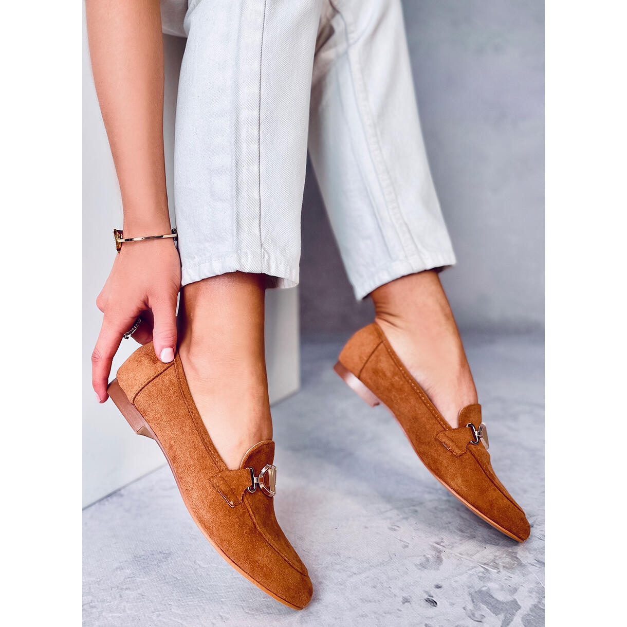 Les mocassins élégants Freda Camel pour femmes en marron sont le choix parfait pour tout amateur d'élégance et de confort. Fabriquées en daim écologique, ces chaussures combinent un design classique avec une décoration dorée de bon goût qui attirera sûrement l'attention. Leur bout rond et leur talon plat assurent un confort de port tout au long de la journée, aussi bien dans des styles élégants que décontractés.