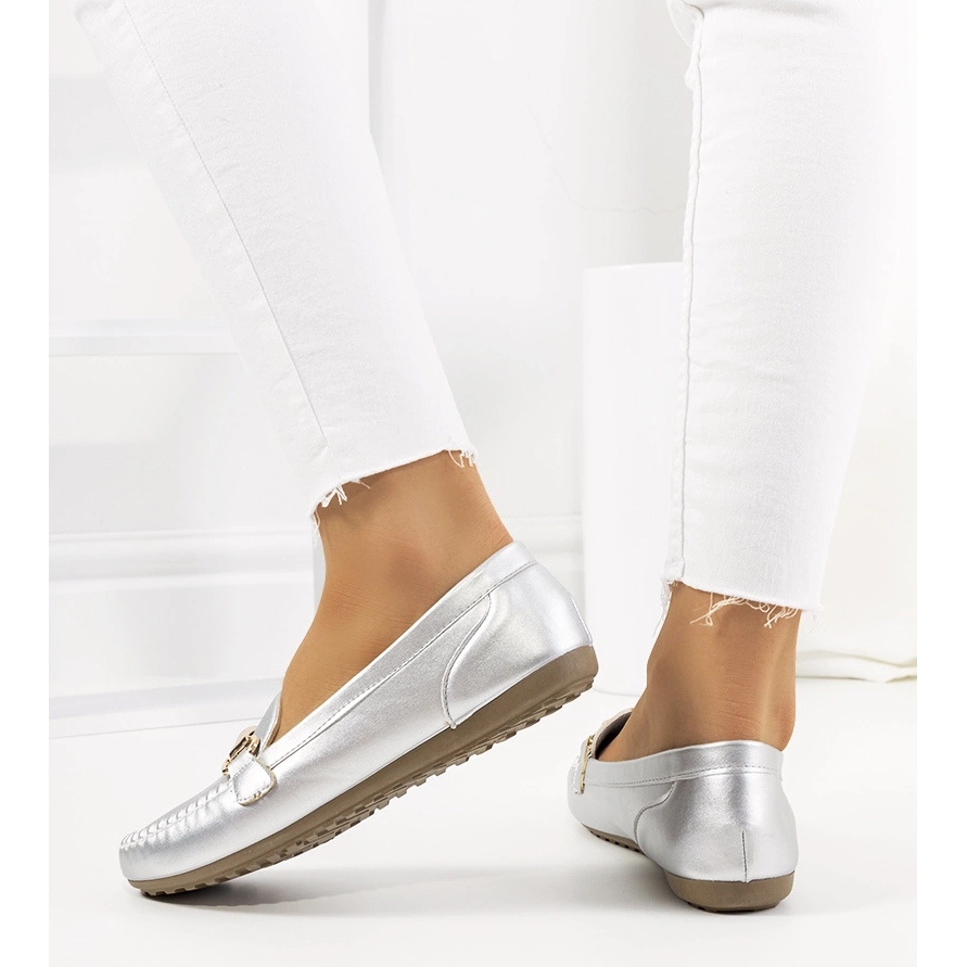 Les mocassins Silver Ilana sont un complément élégant à la garde-robe - idéal pour le travail et pour les sorties d'été. Fabriqué en cuir écologique, avec une tige extrêmement douce, qui enveloppe doucement le pied, assure le confort toute la journée. Le personnage est ajouté par un revêtement métallique et une chaîne décorative au nez, et l'ourlet décoratif avec un fil épais met l'accent sur la coupe classique avec un accent moderne.
