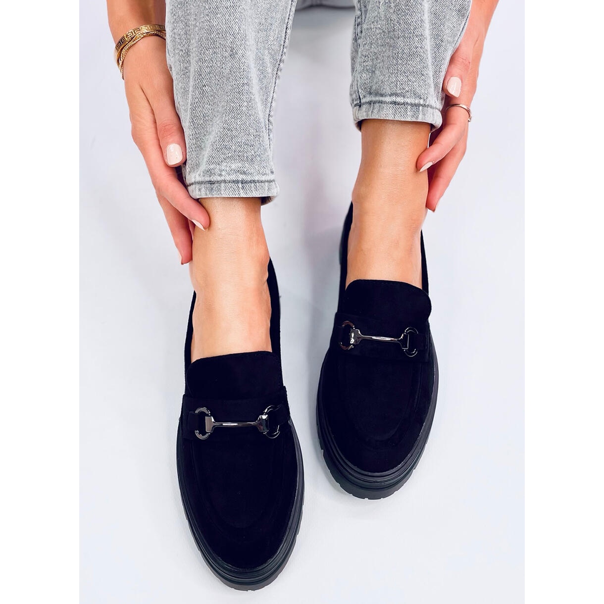 Découvrez l'élégance et le confort à la fois grâce aux mocassins pour femme Lear Black. Fabriquées en daim écologique de haute qualité, ces chaussures uniques à semelle épaisse s'intègrent parfaitement au style minimaliste que vous suivez. Le modèle décoré d'une boucle décorative et de strass attire l'attention, soulignant votre caractère unique et votre sens du style.