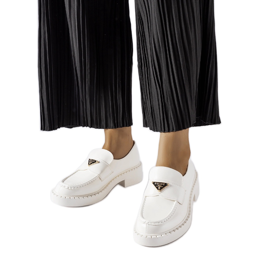 Mocassins modernes et légers dans un épisode blanc universel - idéal pour la jeune génération qui apprécie le confort et l'apparence à la mode. La coupe coulissante avec une orteil ronde assure le confort quotidiennement, et la conception minimaliste peut facilement être intégrée dans des stylisations décontractées et légèrement plus formelles.