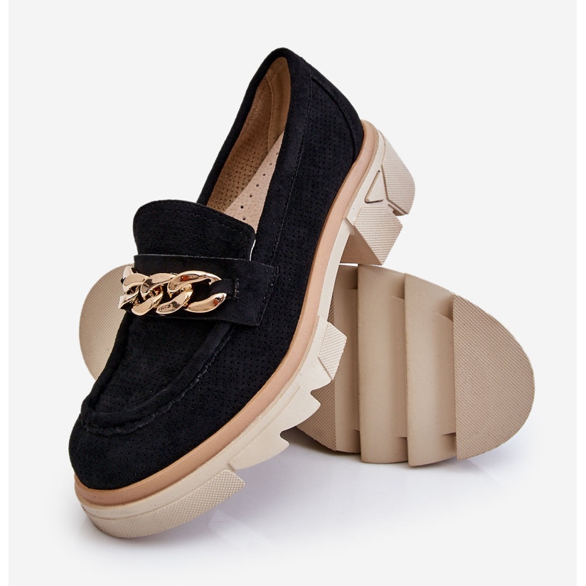 PM1 Mocassins Femme Mocassins Avec Chaîne Noir Luella