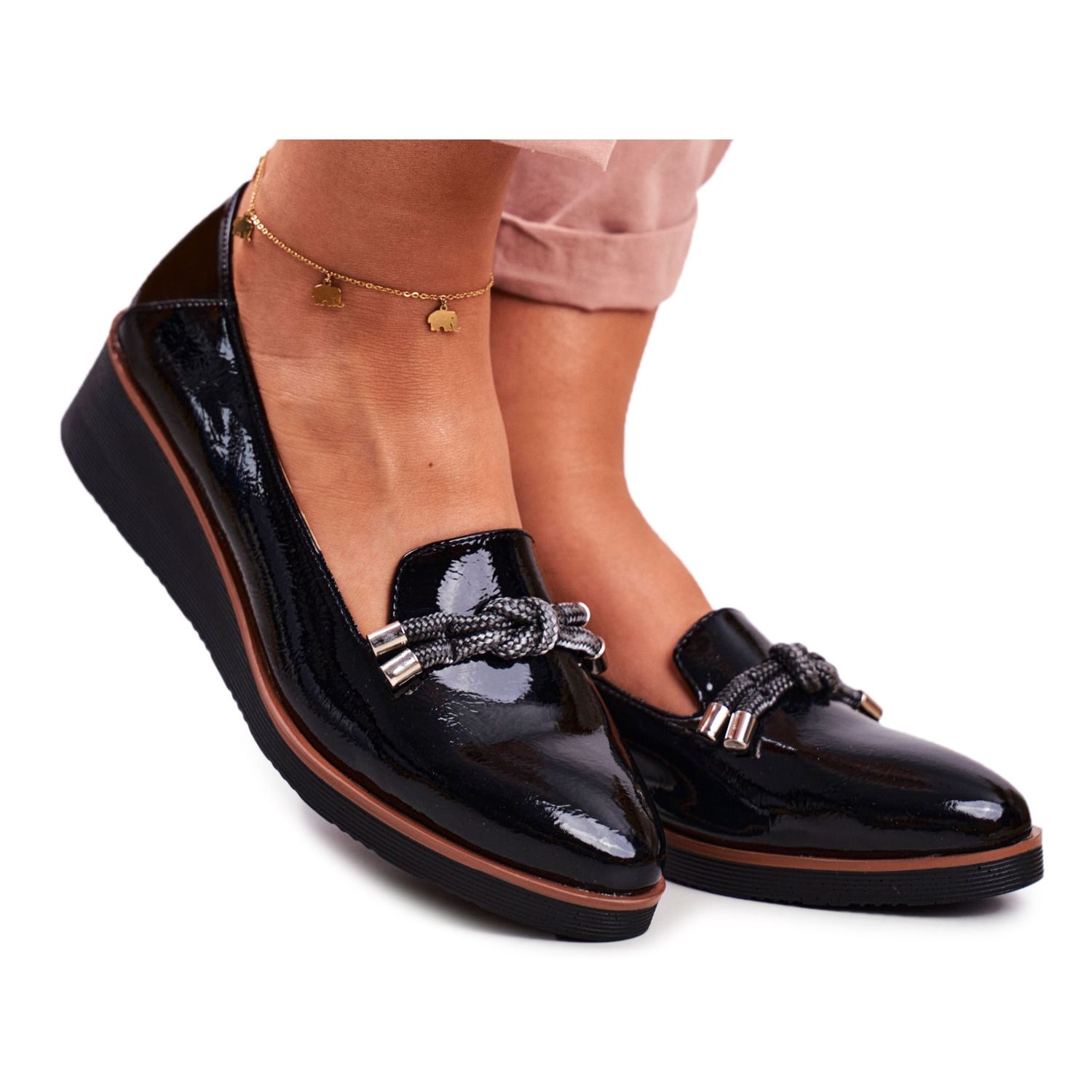 Détails: Vinceza Mocassins Femme Noir Laqués sur le Cale Abba le noir