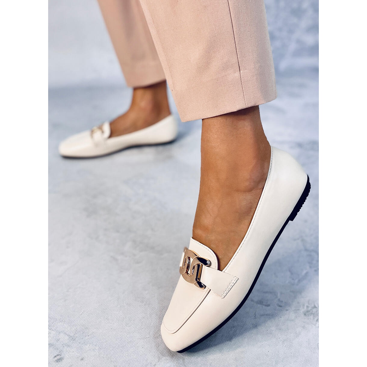 Les mocassins beige subtils de Paola sont la combinaison parfaite de forme et de confort classiques. Le nez carré donne aux chaussures un caractère à la mode, et le lassle d'ornement doré ajoute du style. Un insert en cuir écologique doux et agraféra réconfortera à chaque étape, grâce auquel le modèle est idéal pour le travail et pour les réunions de la ville.