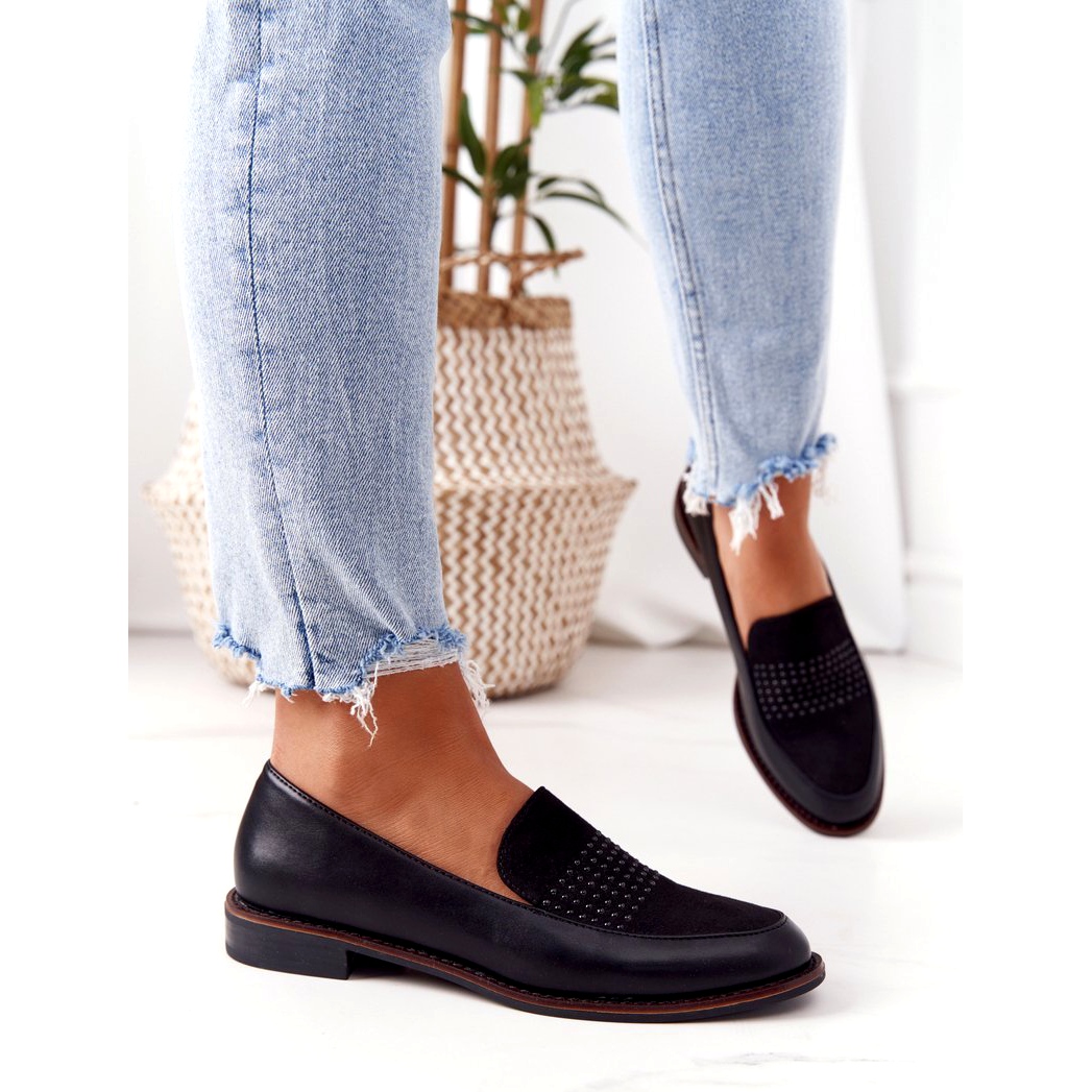 Découvrez l'élégance et le confort avec les mocassins pour femmes Sergio Leone PB255 d'une couleur noire classique. Ces chaussures élégantes en cuir écologique de haute qualité allient design tendance et souci du détail. La semelle intérieure confortable et douce en cuir naturel assure un confort de port extraordinaire, ce qui en fait un choix idéal pour tous les jours et les occasions spéciales.