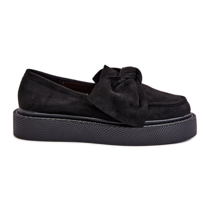 Les mocassins pour femmes sur la plate-forme avec un arc noir noir sont un excellent choix pour chaque femme à la mode qui apprécie le confort et le style. Ces mocassins élégants étaient soigneusement fabriqués en daim eco de haute qualité, ce qui les rend extrêmement impressionnants.