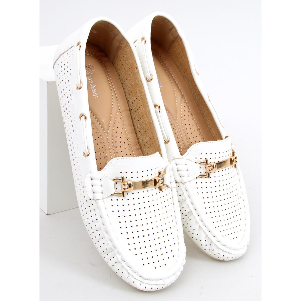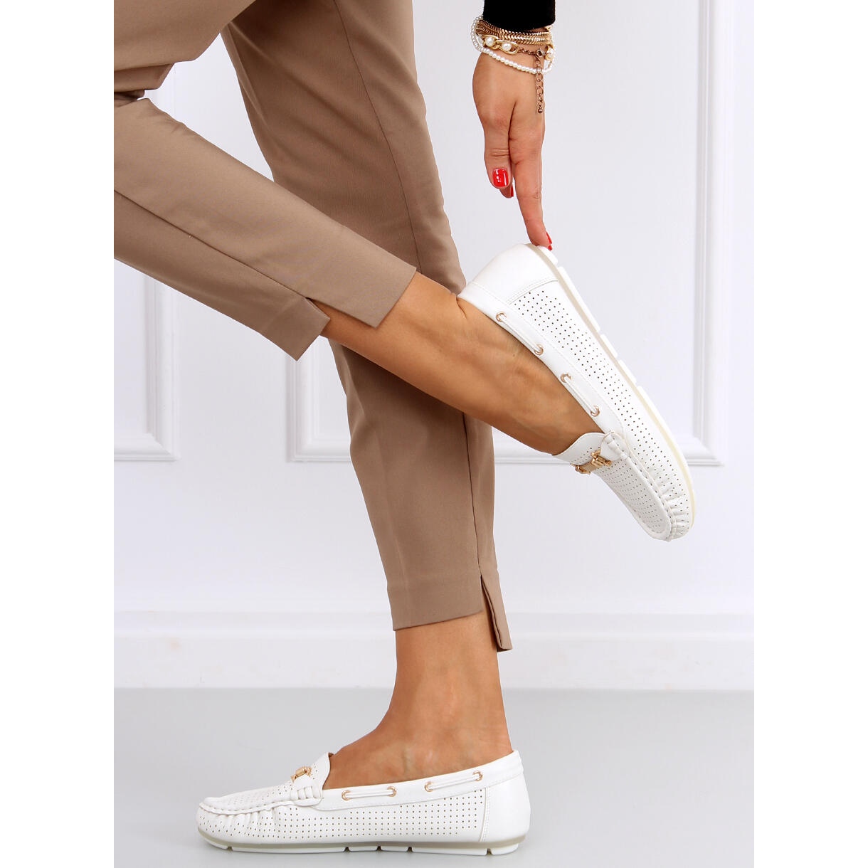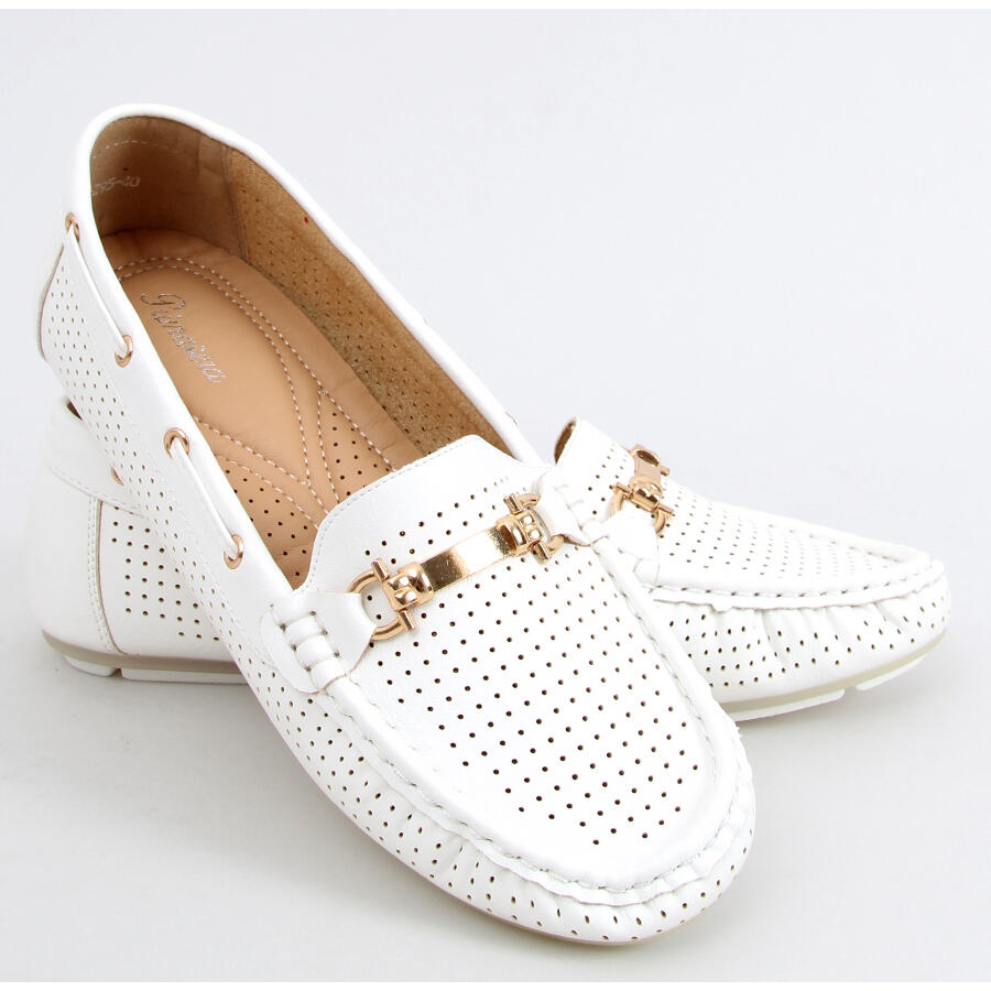 Nous vous présentons les mocassins pour femmes Wong White dans une version blanche, qui allient parfaitement élégance et confort. Ces chaussures ajourées sont un modèle intemporel, parfait pour un usage quotidien comme pour les occasions plus formelles. Leur design soigné avec des coutures subtiles attire l'attention, et la décoration dorée élégante leur donne un caractère unique.