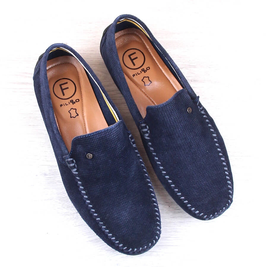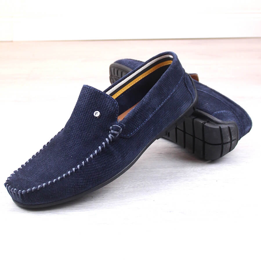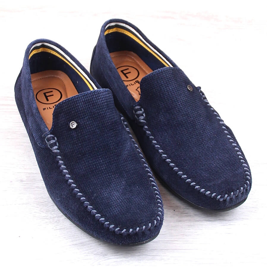 Détails: Mocassins homme cuir daim bleu marine Filippo MP923