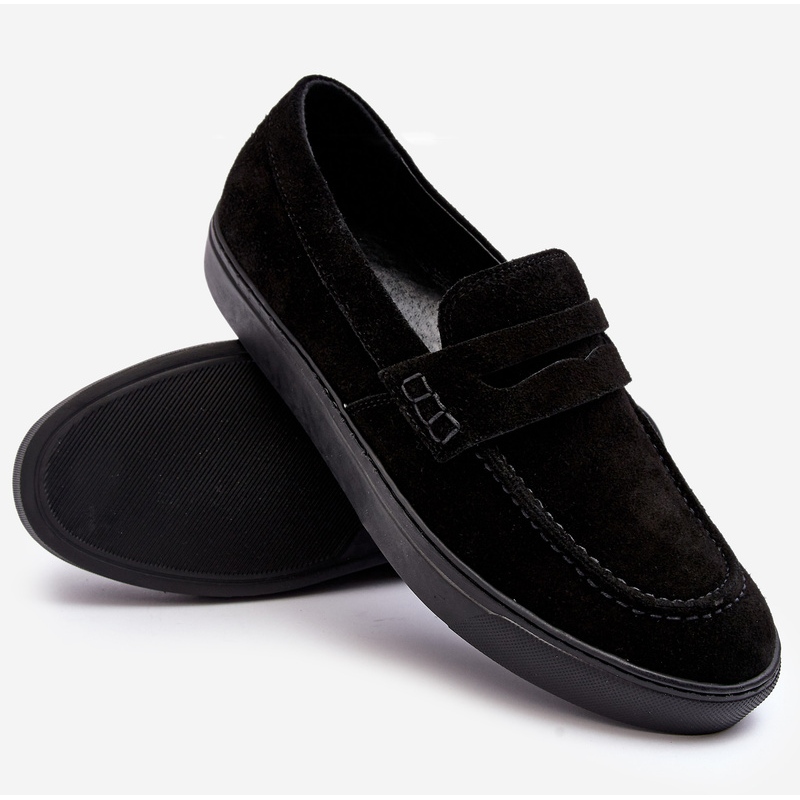 La production polonaise garantit non seulement une qualité de fabrication élevée, mais également un soutien à l'économie nationale. Des matériaux soigneusement sélectionnés, une apparence élégante et un confort de port font des mocassins pour hommes en daim noir Zazoo 1574 l'un des meilleurs choix pour chaque homme.