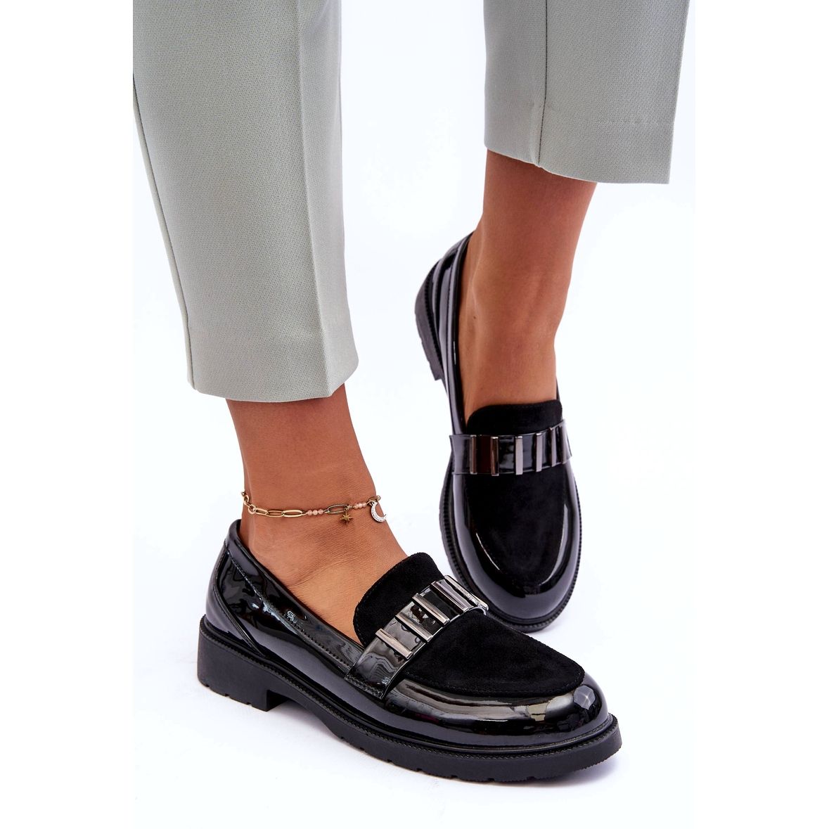 - Modèle: Mocassins en cuir verni avec décorations