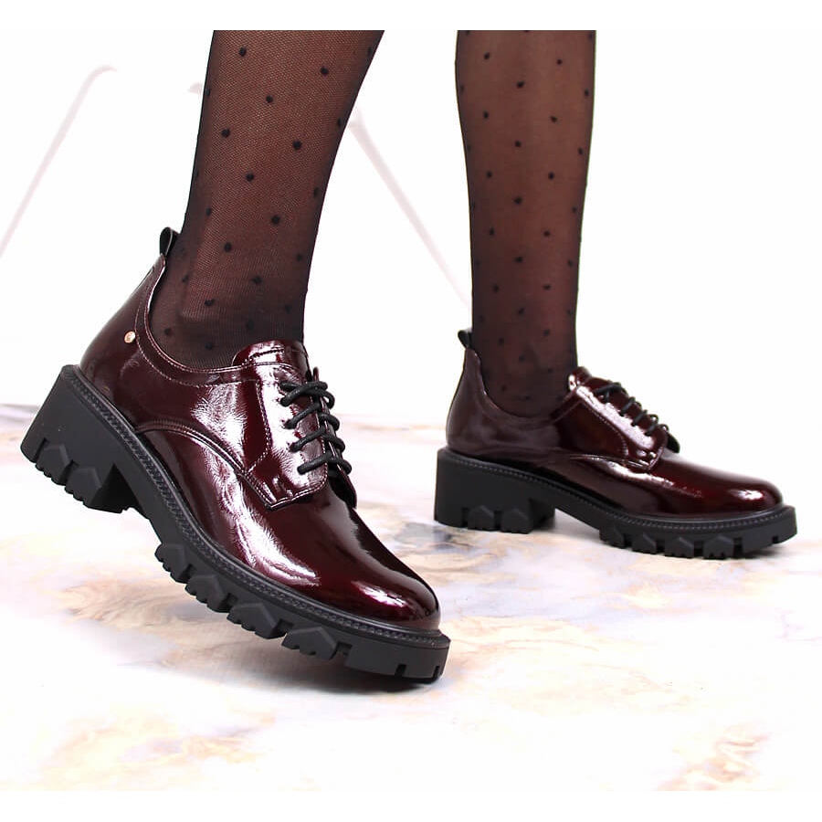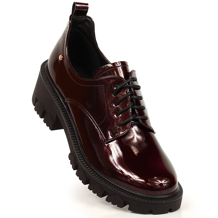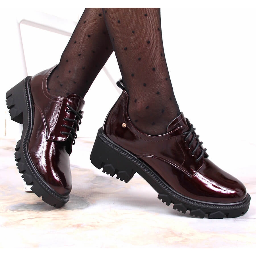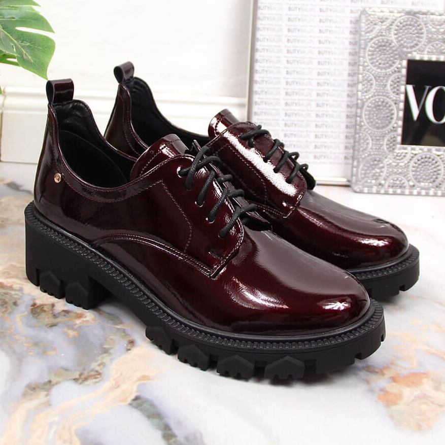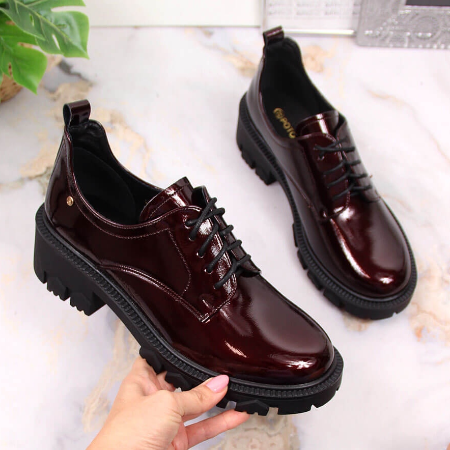 Voici le modèle de chaussures parfait pour toute femme qui valorise l'élégance et le confort : les mocassins pour femmes vernis bordeaux à talon haut de la marque Potocki. Ces chaussures uniques se distinguent non seulement par leur belle couleur bordeaux, mais également par un travail soigné du cuir écologique, ce qui les rend à la fois visuellement attrayantes et respectueuses de l'environnement.