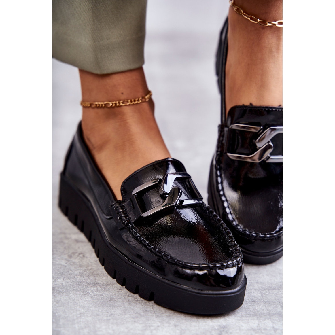 Sergio Leone Mocassins Laqués Sur La Plateforme Noire Kjersti