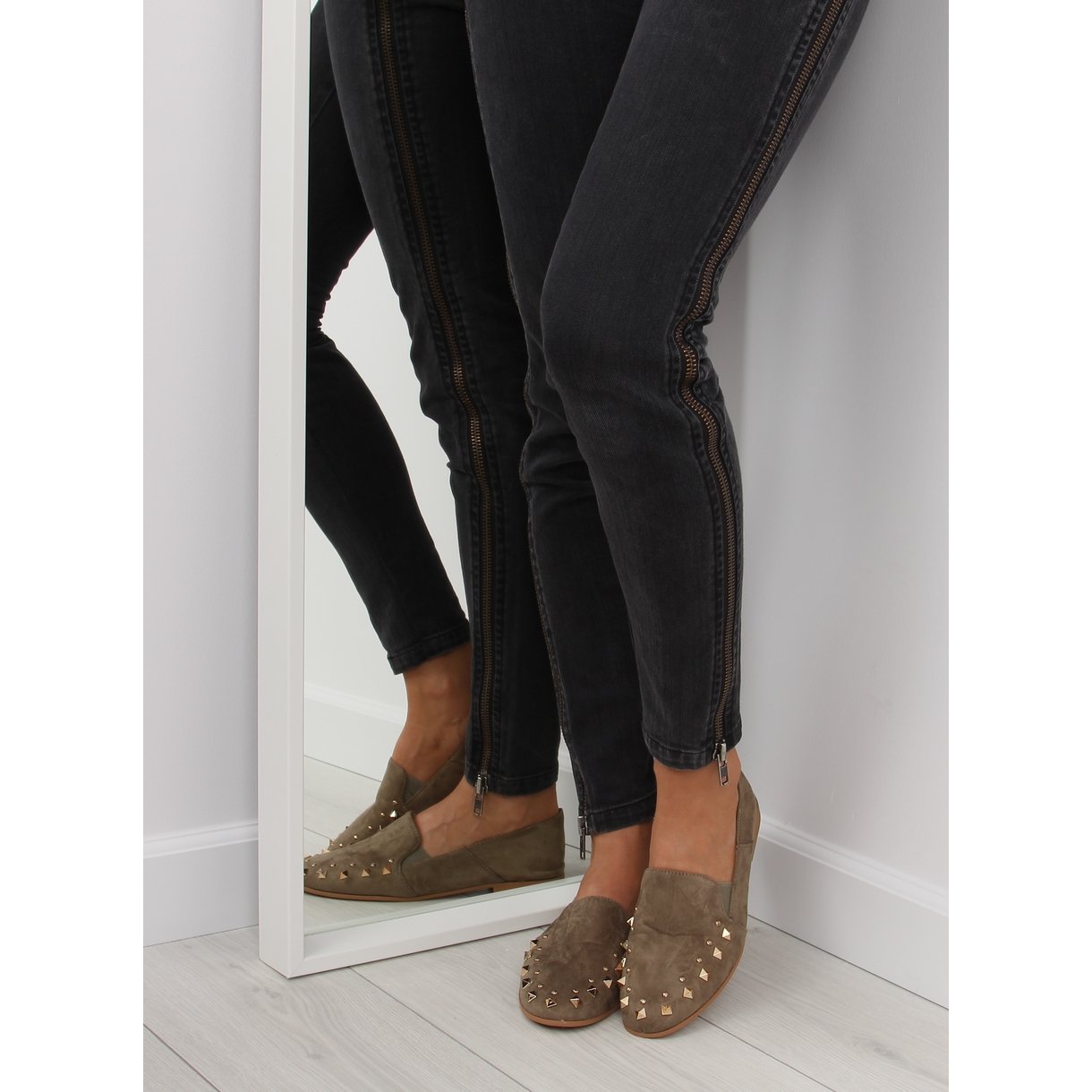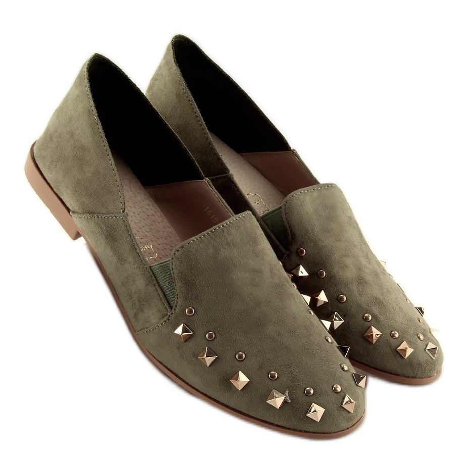 Les mocassins Lords à clous verts 1415 Green sont un choix idéal pour les femmes qui souhaitent allier confort et style unique. Fabriquées en daim écologique unique, ces chaussures attirent l'attention par leur aspect original, grâce aux clous décoratifs et aux strass qui leur confèrent un caractère moderne.