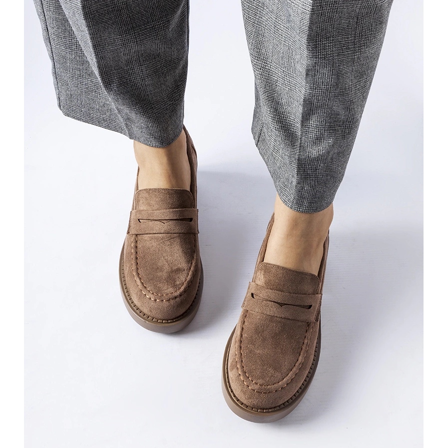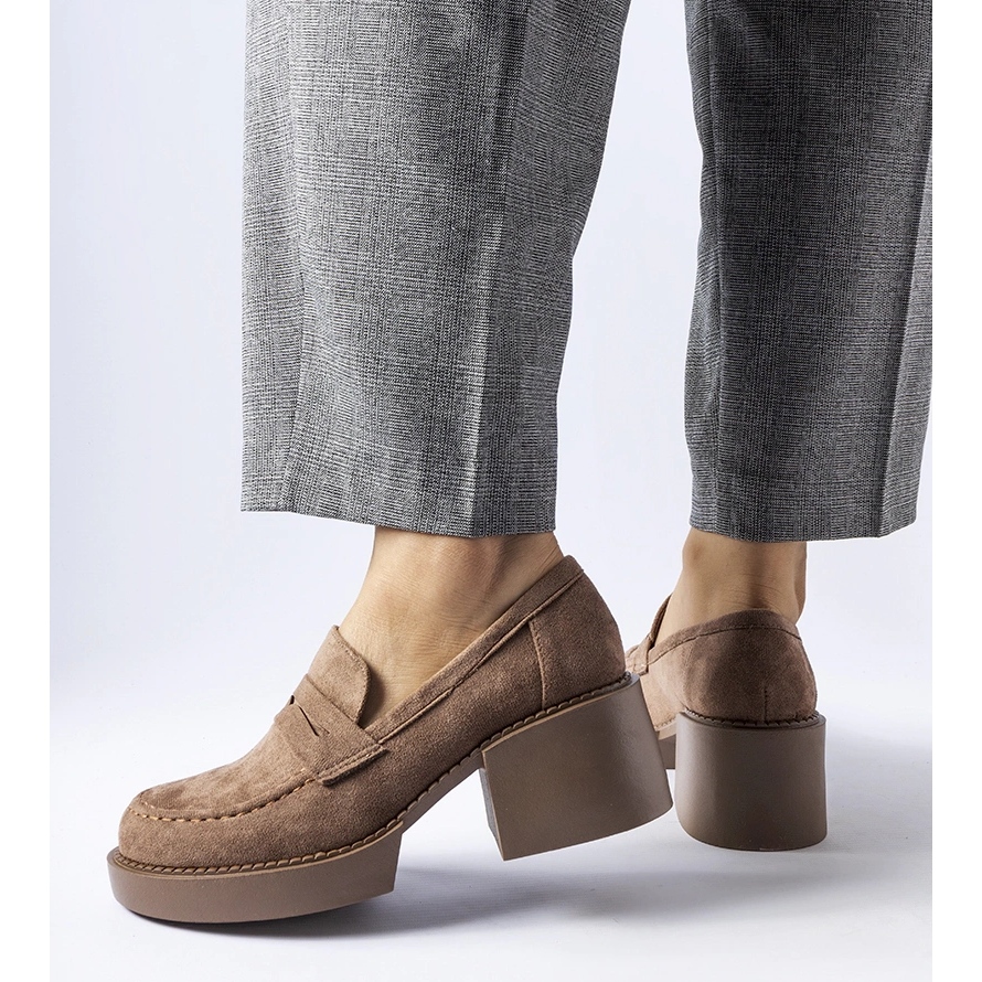 Les mocassins féminins élégants et confortables Taupe (brun), parfait pour la saison estivale. La combinaison d'une coupe classique avec des solutions pratiques: structure coulissante, orteil rond et hauteur moyenne du talon, le type de bloc assure le confort tout au long de la journée et un look universel à la mode.