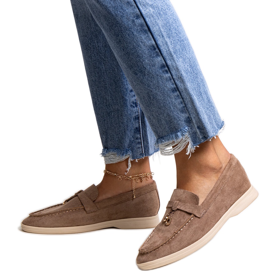 Détails: Mocassins marron foncé avec pendentif en métal de Fiorano beige