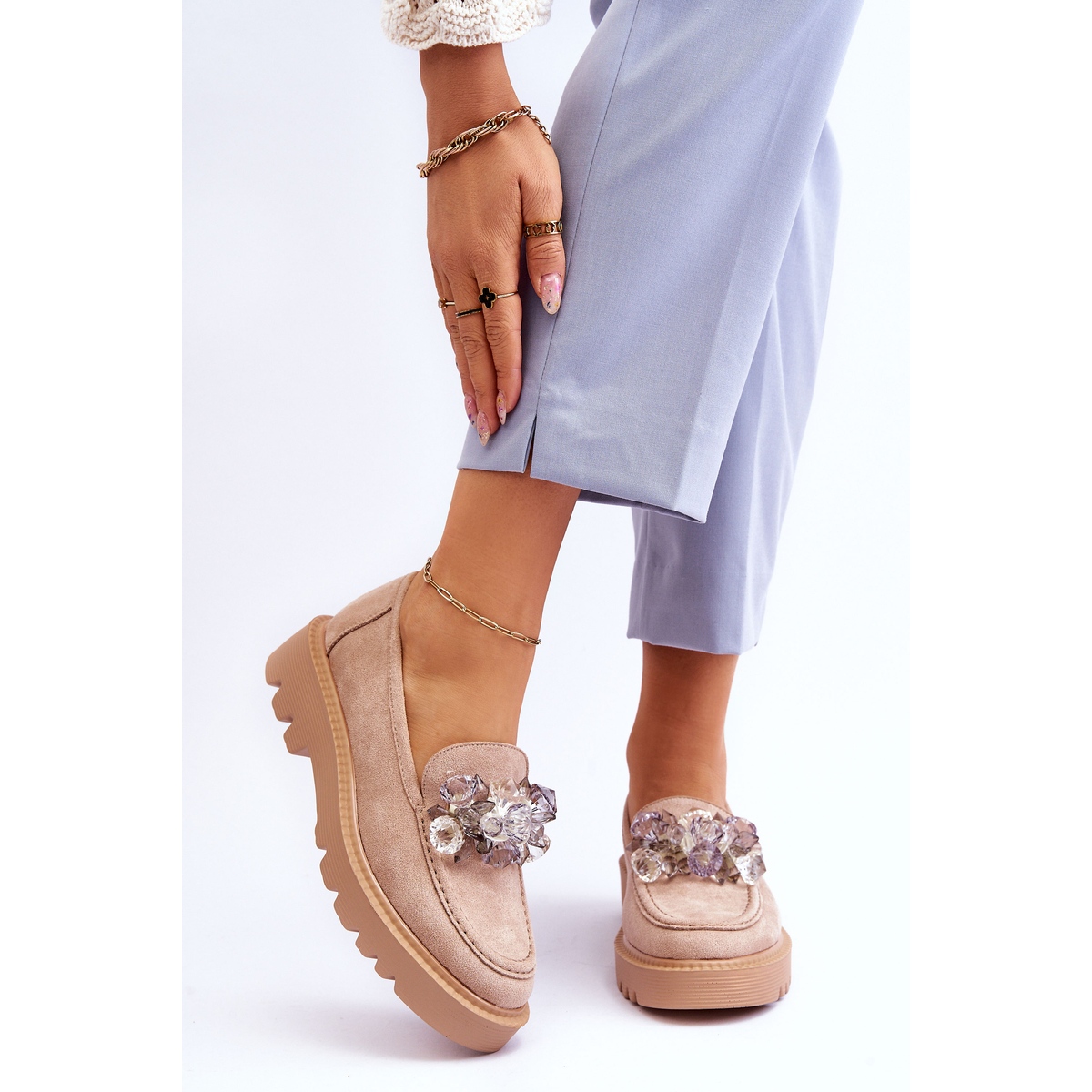 Découvrez les chaussures parfaites pour la saison printemps-été avec les mocassins beiges de Vinceza Demeris ! Ces élégants mocassins pour femmes sont fabriqués en éco-daim de haute qualité, ce qui garantit non seulement un look élégant, mais aussi un confort de port. Ornés de cristaux subtils, ils complètent parfaitement tout style estival.